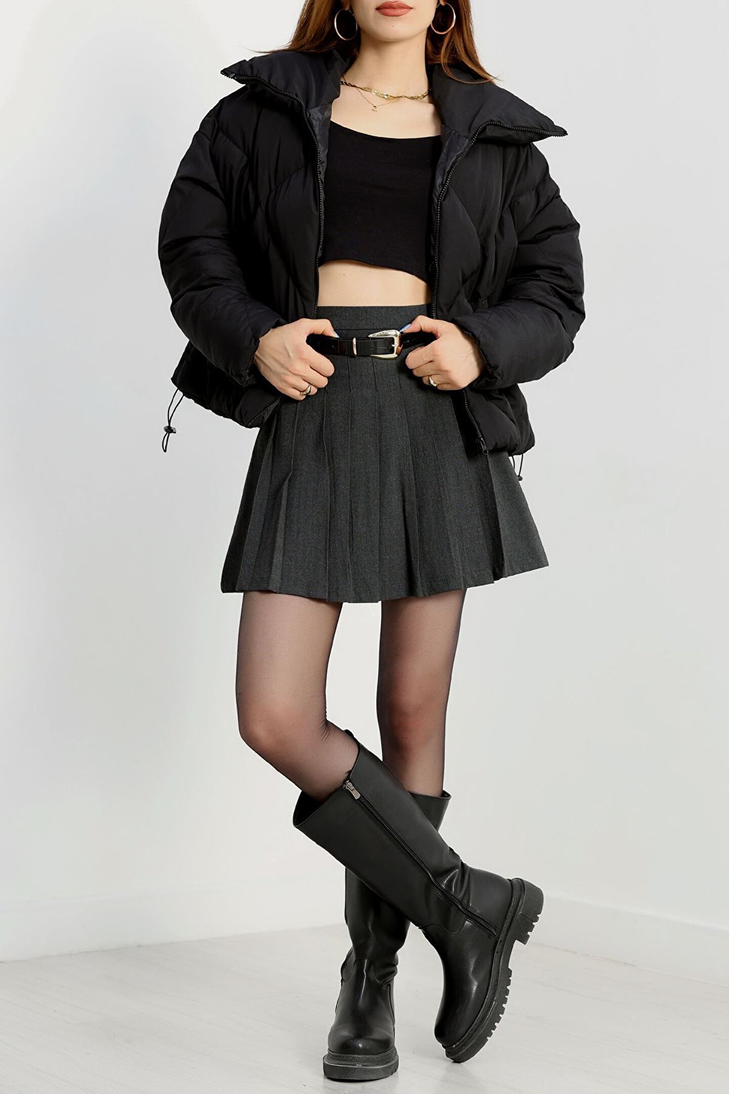 • Mini etek, kot pantolon, tayt ve botlarla zahmetsiz şıklık sunar.