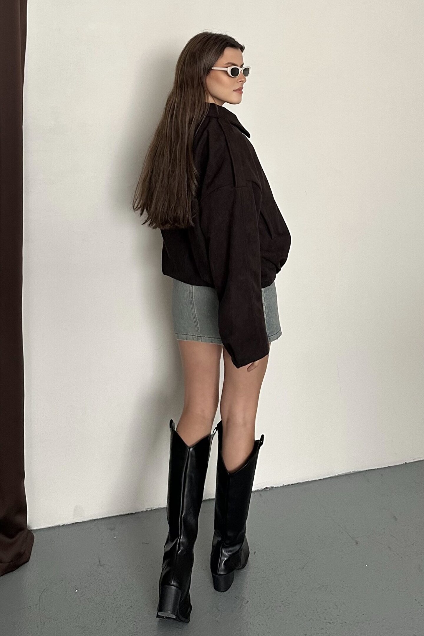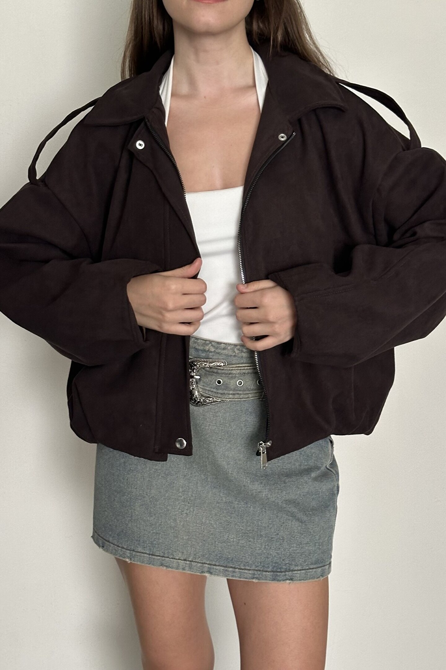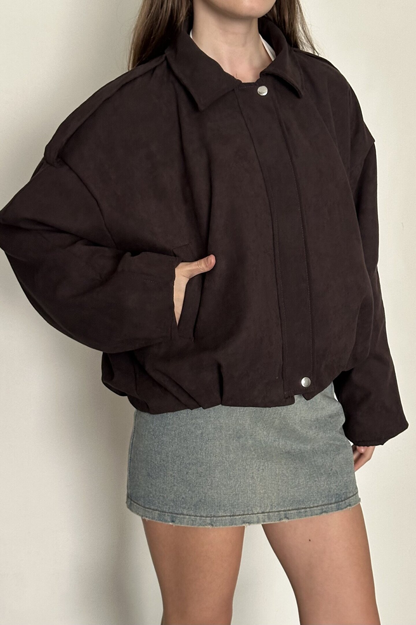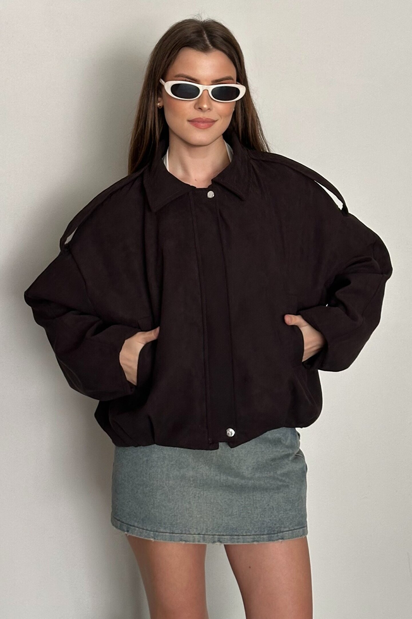 moda armanc Kadın Oversize Süet Kahverengi Bomber Ceket - Yeni Sezon Günlük Şık Mont
