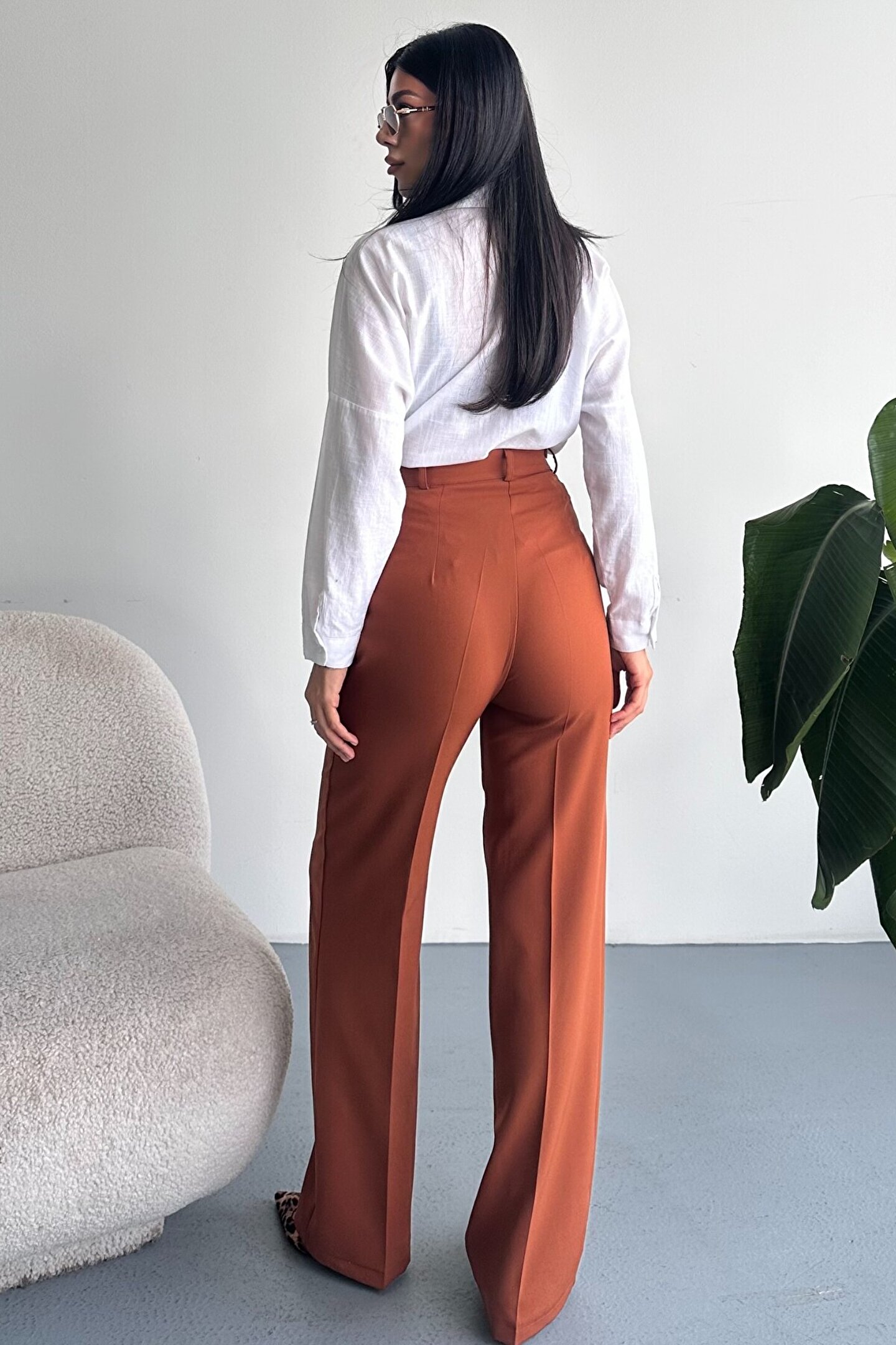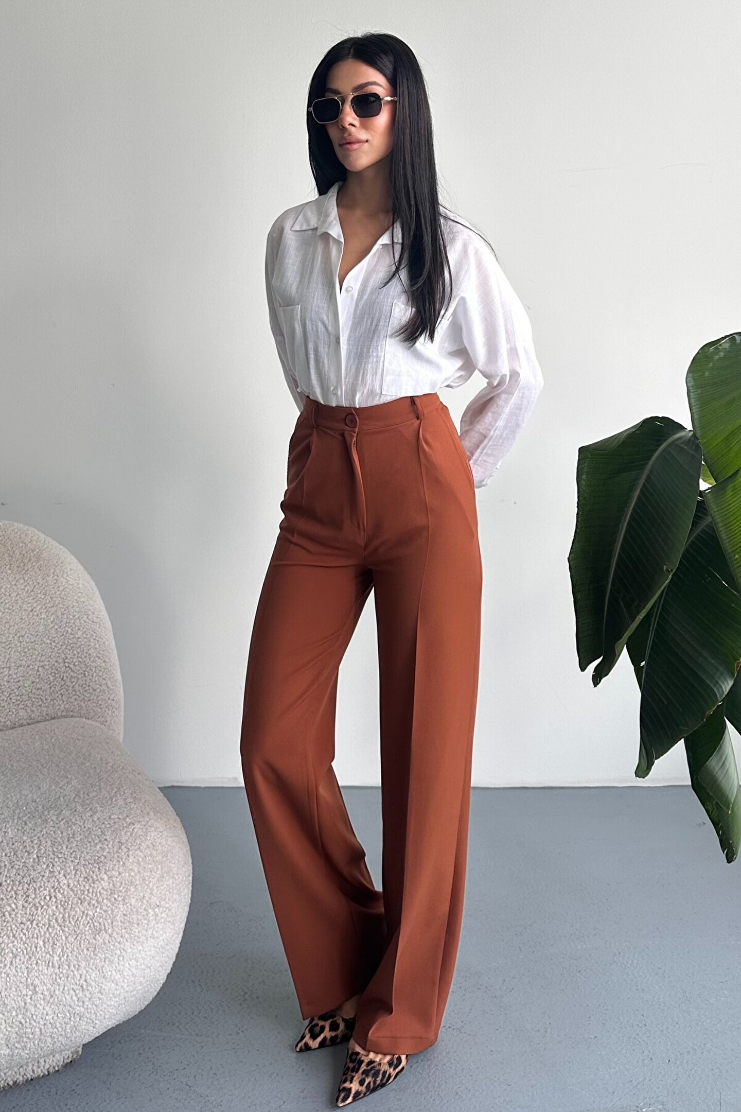 Kadın Palazzo Pantolon; Modern kesimi ve yüksek bel formuyla hem ofis hem günlük kombinlerin vazgeçilmez şık pantolon modeli.; ; Zamansız stil anlayışını modern kesimle buluşturan yüksek bel geniş paça kumaş pantolon, hem günlük kombinlerde hem ofis stilinde şık ve güçlü bir görünüm sunar.; ; Yüksek bel tasarımı vücut formunu dengelerken, akıcı ve düz paça kesimi bacak boyunu daha uzun ve zarif gösterir.; ; Minimal ve sade görünümü sayesinde farklı üst parçalarla kolayca kombinlenebilir.; ; Günlük kullanımda crop, basic tişört ve gömleklerle modern bir stil oluştururken, blazer ve topuklu ayakkabı ile klasik ofis şıklığına uyum sağlar.; ; Akıcı yapısı gün boyu konfor sunarken, güçlü silueti sayesinde stil sahibi ve modern bir duruş kazandırır.; ; Yüksek bel toparlayıcı form ; İspanyol paça modern kesim ; Akıcı ve rahat kumaş yapısı ; Günlük, ofis ve şehir stiline uygun ; Kolay kombinlenebilir zamansız tasarım ; Şık ve dengeli siluet görünümü ; Gardırobun en kurtarıcı parçalarından biri olacak bu model, hem klasik hem modern stil seven kadınlar için tasarlanmıştır.; ;