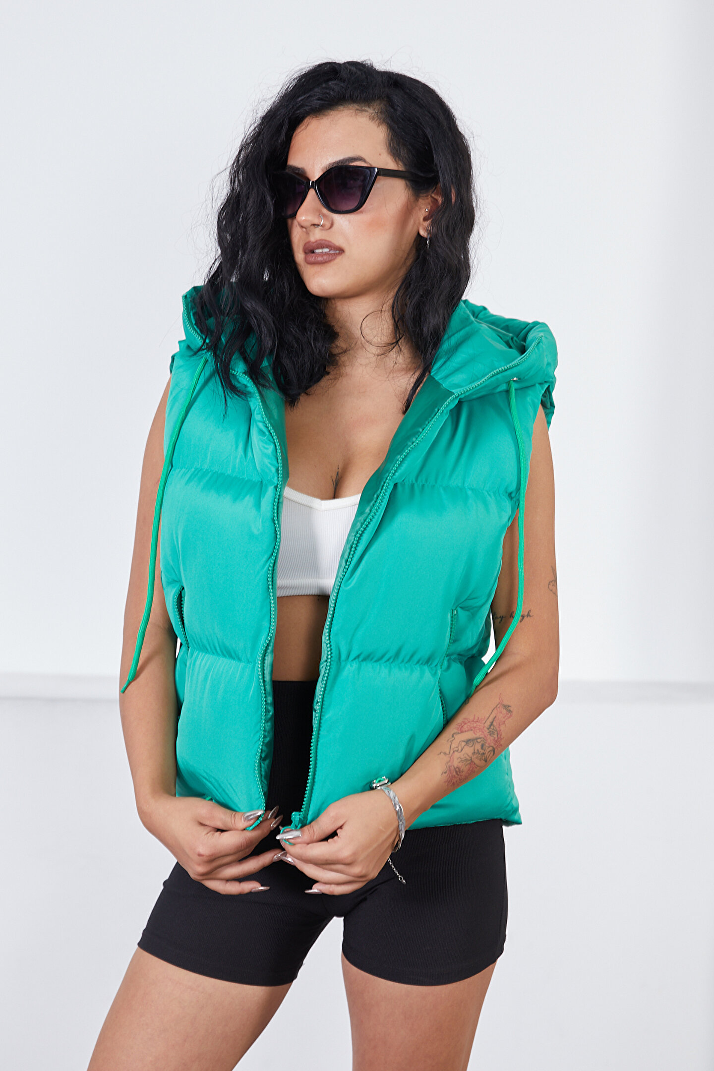 Modelin Ölçüleri: Boy: 1,65 Kilo: 50 kg (mankenin üzerindeki beden S bedendir) ; jel elyaf dolgulu, rüzgar gecirmez, su itici kumaş özelliklerine sahip full dolgulu kapüşonlu şişme yelek ;