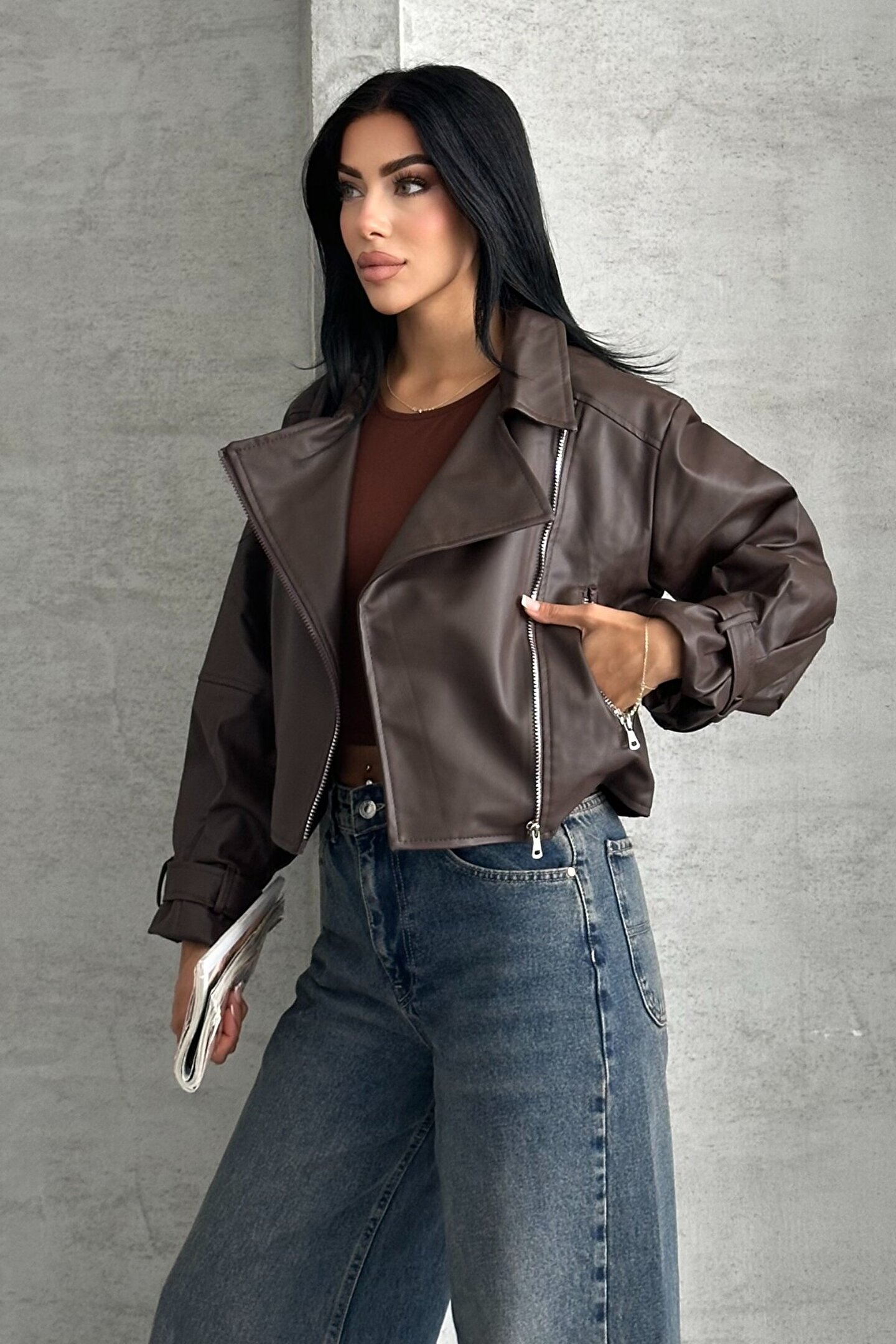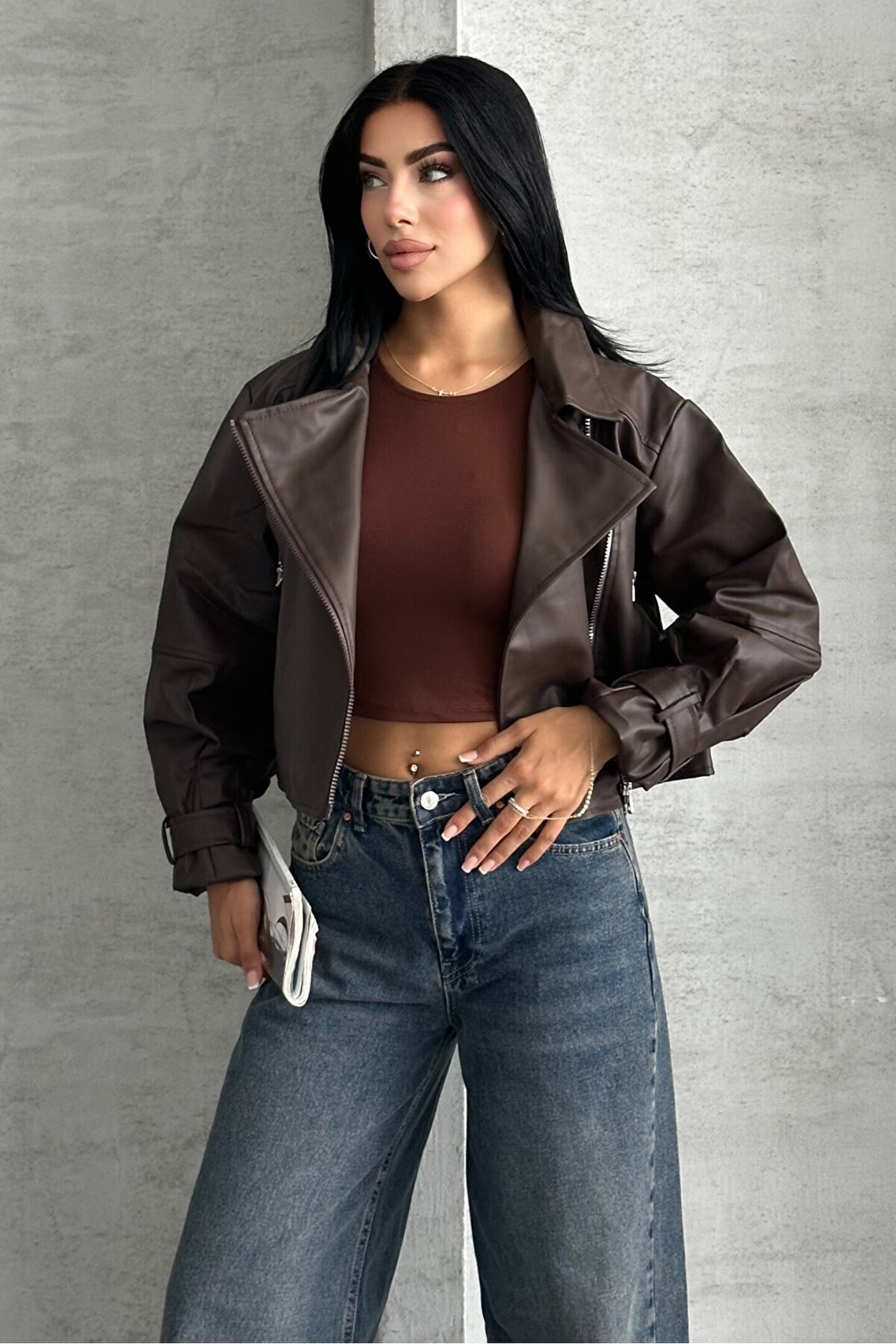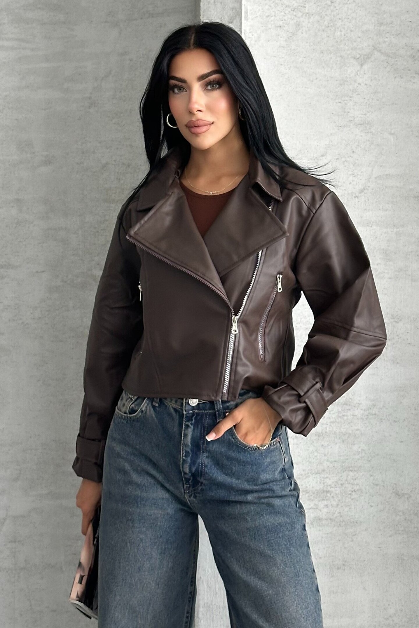 • Tarzınızı tamamlayacak kahverengi deri görünümlü ceket ile kombinlerinize modern bir dokunuş katın.