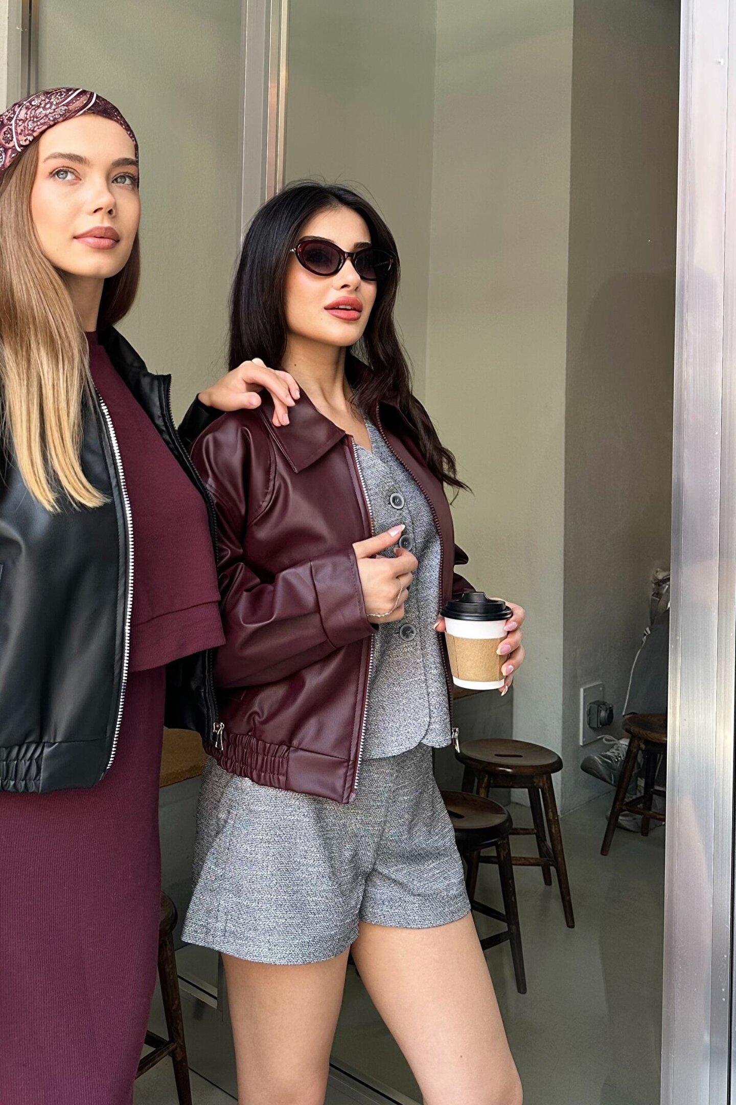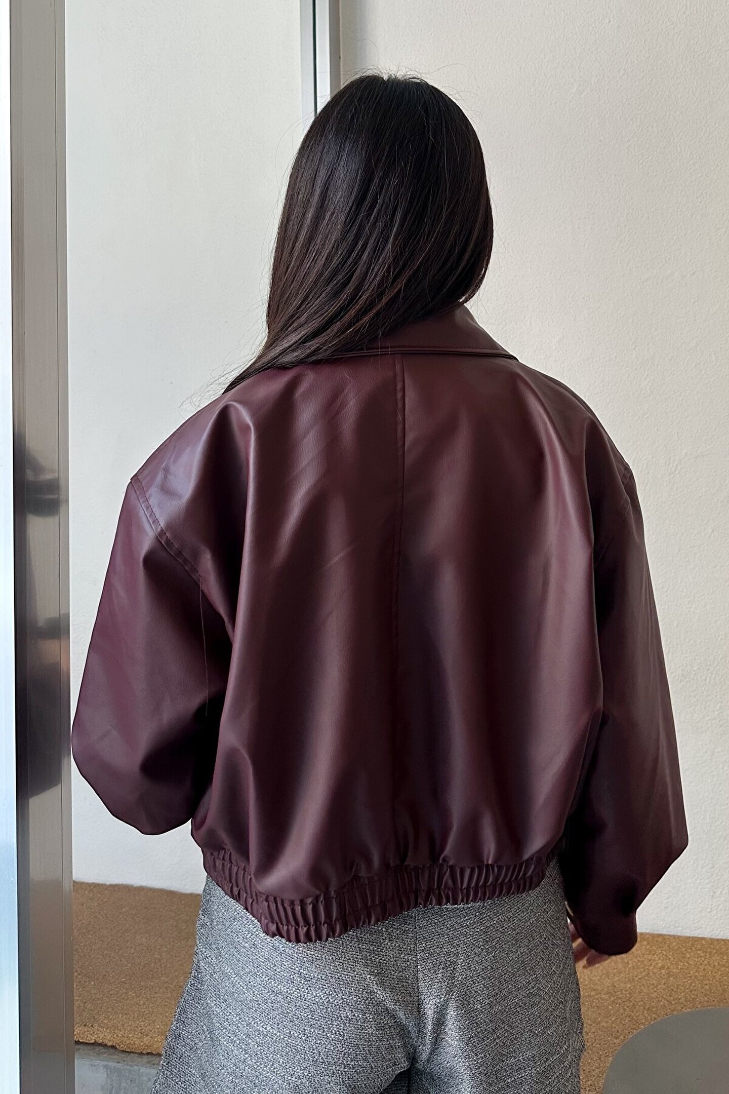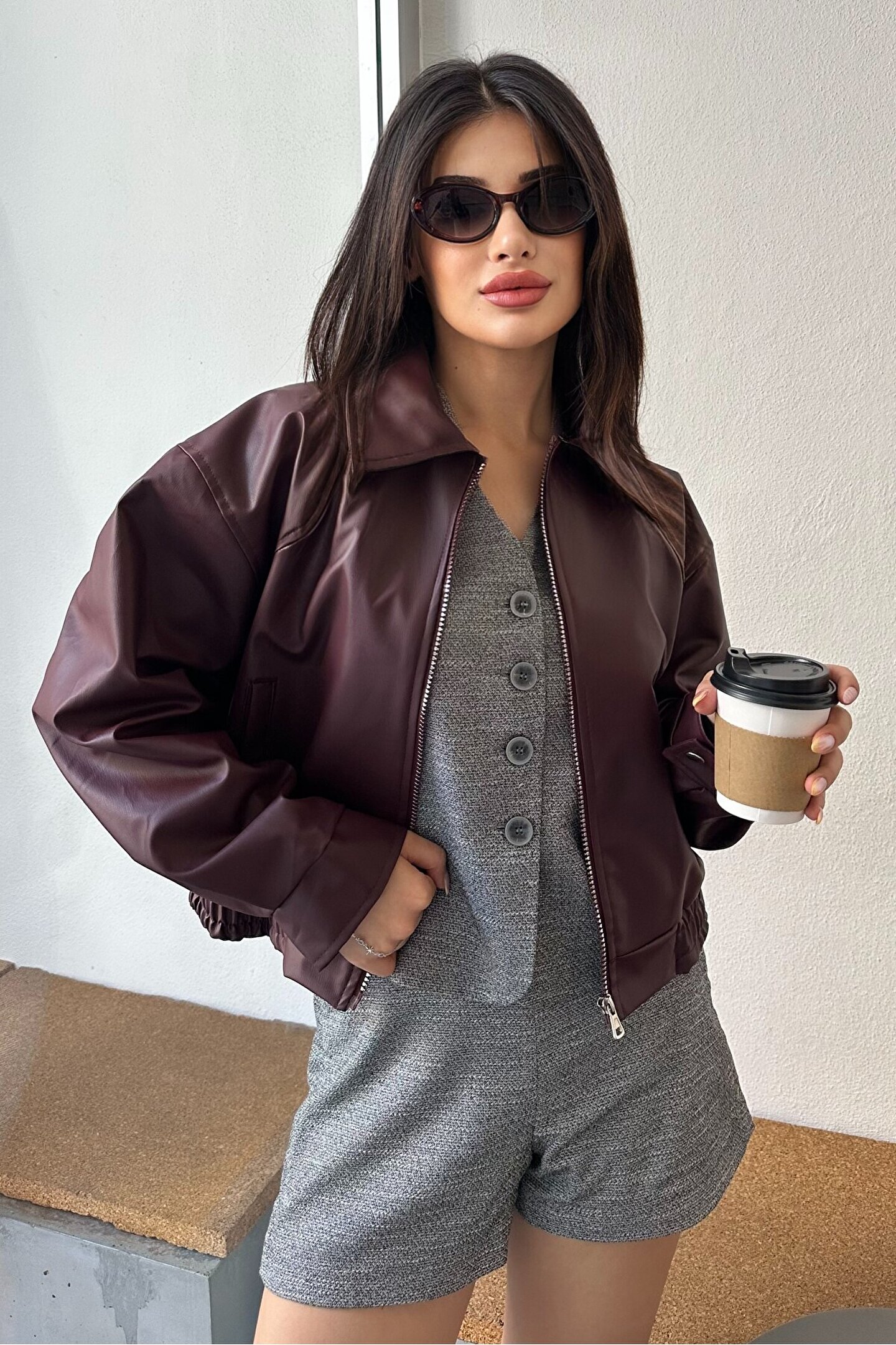 moda armanc Yakalı Suni Deri Bomber Ceket