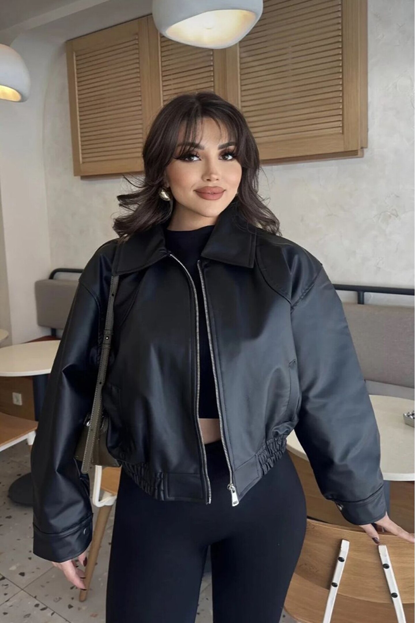Bu siyah oversize bomber deri ceket; modern, şık ve çabasız cool bir stil sunar.; ; Ön fermuar detayı, rahat kalıbı ve kısa kesimi ile hem günlük kombinlerde hem şehir stilinde mükemmel durur.; ; Etek, elbise, tayt veya jean ile kolayca kombinlenebilir.; ; Trend oversize kesim ; Yüksek kaliteli suni deri görünüm ; Fermuarlı ön kapama ; Günlük ve sokak stiline uygun ; Mevsim geçişlerine ideal ; Stil sahibi görünmek ve kombinlerine güçlü bir karakter katmak isteyenler için mükemmel bir seçim.