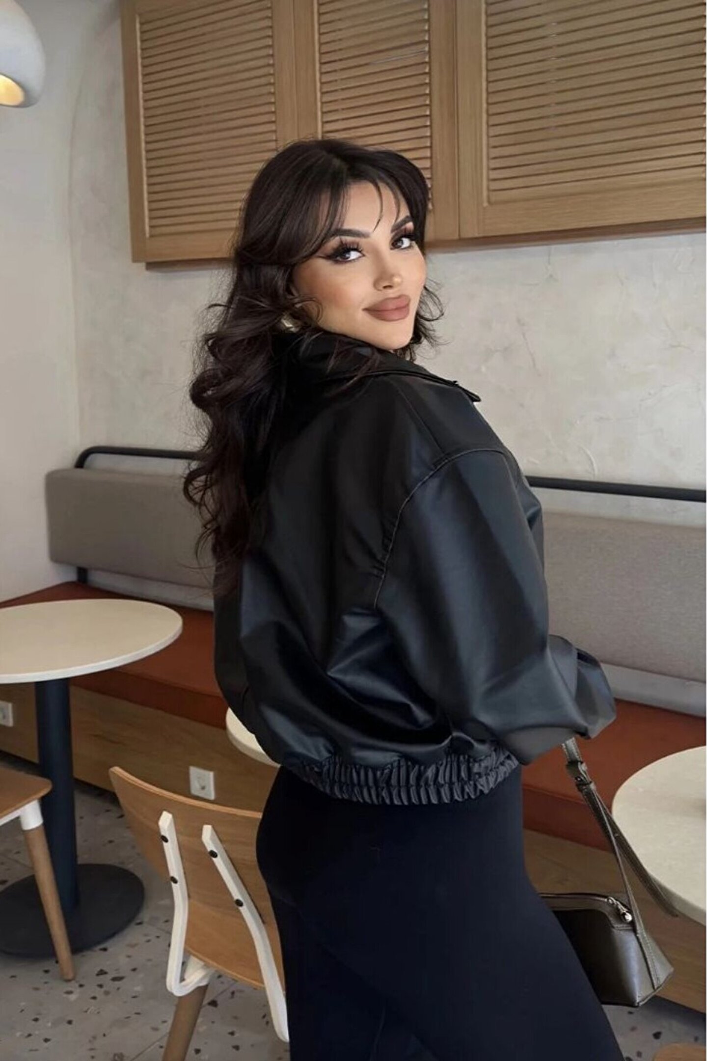 moda armanc Yakalı Suni Deri Bomber Ceket