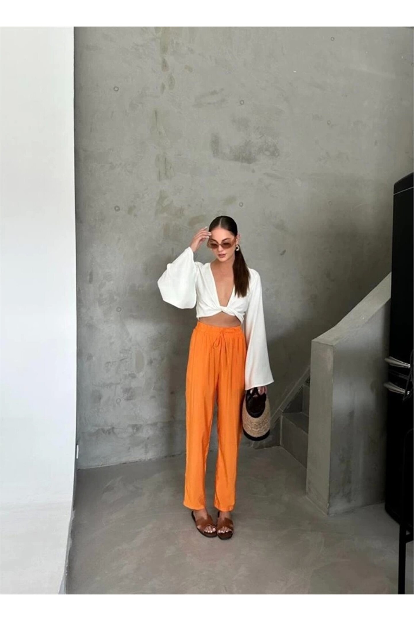 BEL LASTİK DETAYLI MODAL KUMAŞ PANTOLON - Orange
