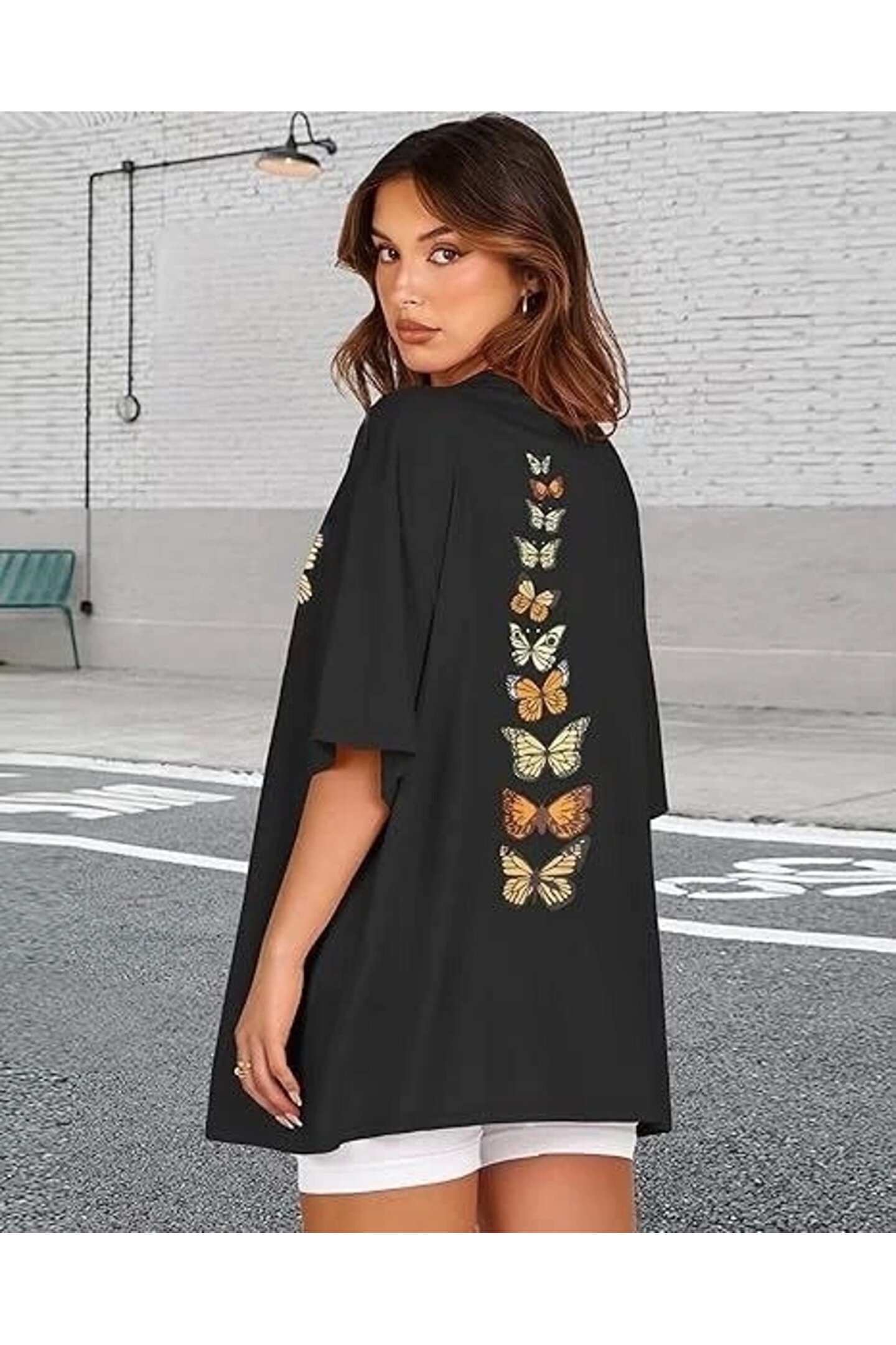 MODA Bisiklet Yaka Baskılı Tshirt iyah
