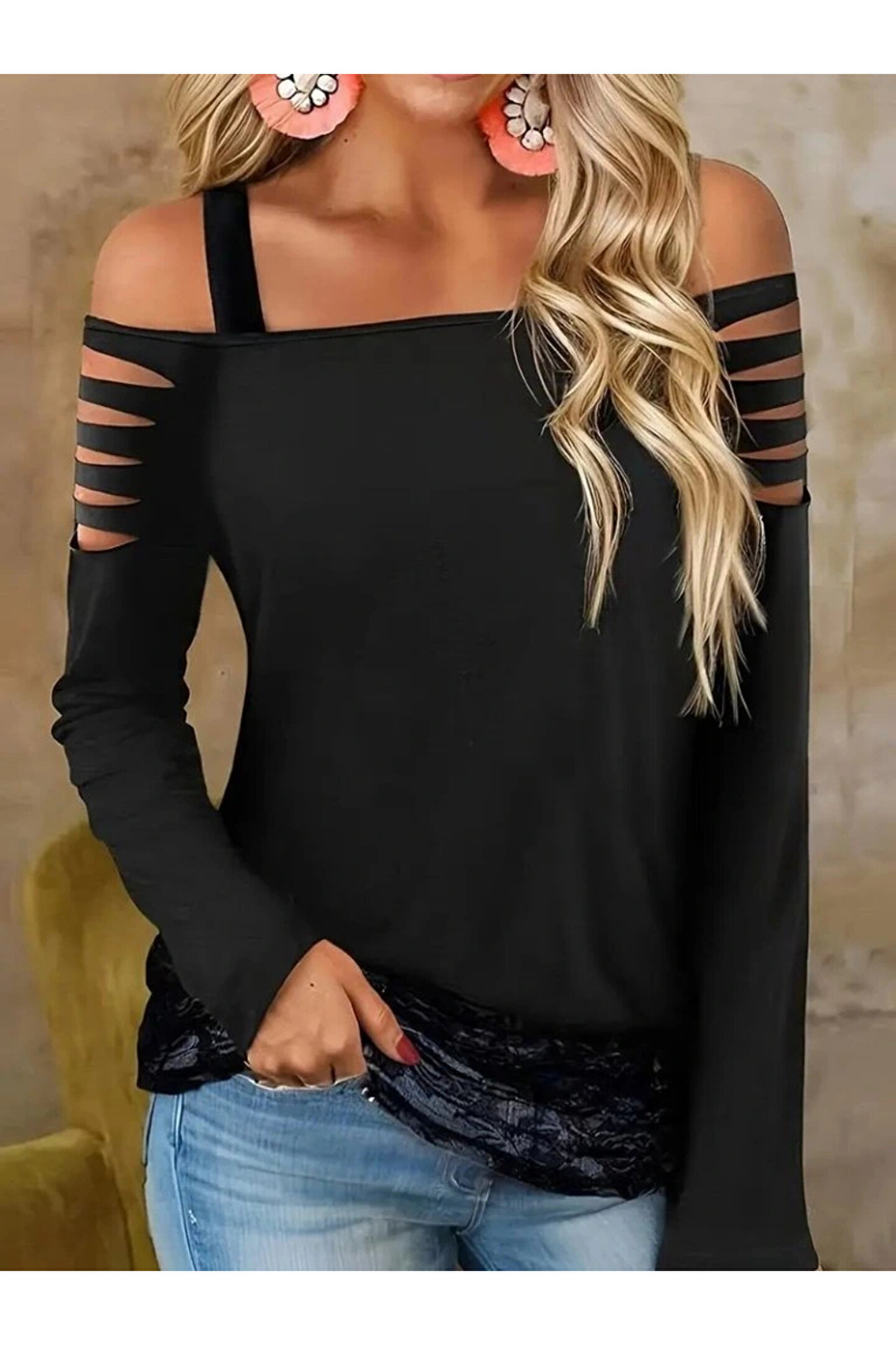Moda Ebrar Kadın Uzun Lazer Kesik Detaylı Askılı Viskon Iki Iplik Bluz