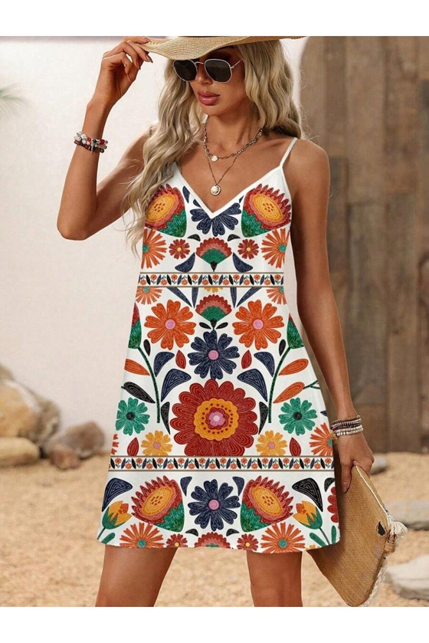 MODA EQURİ Kadın Ip Askılı V Yakalı Süprem Elbise