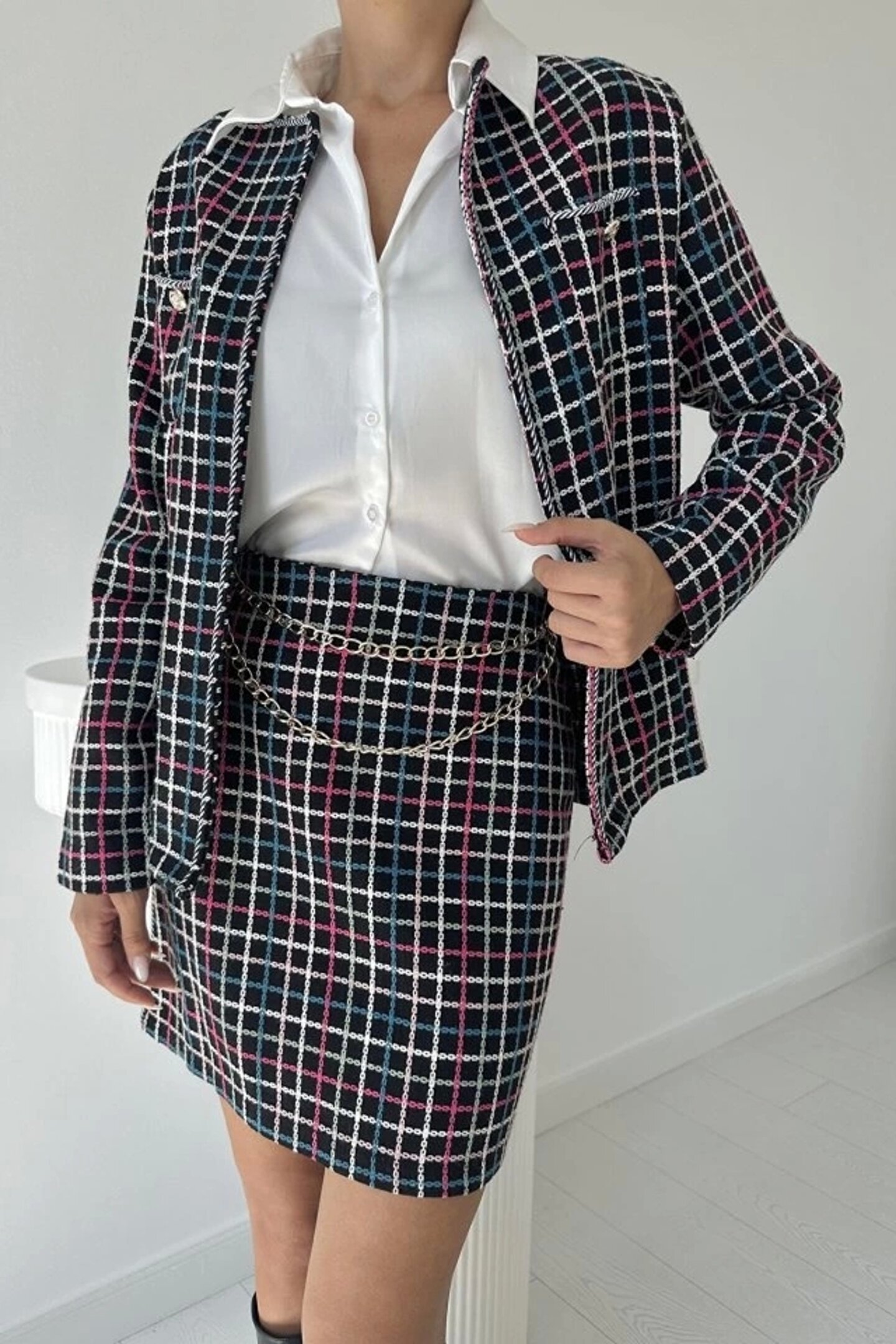 MODA iyah Önü Açık Ceket Ve Eteği Zincirli Takım