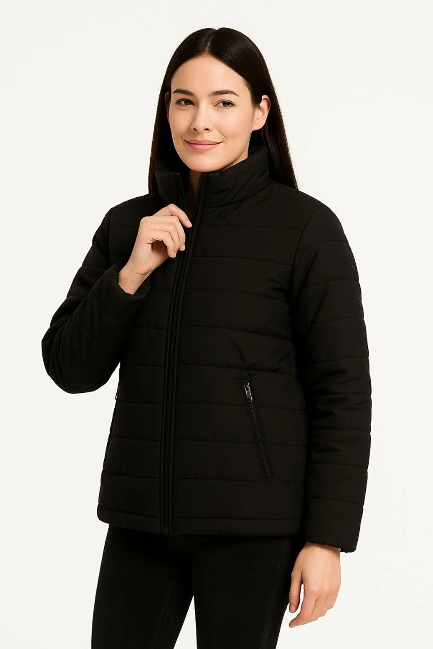 MODA Kadın Bomber Mont Ceket – Su İtici Kumaş, Kapitone Astarlı, Fermuarlı, Kışlık - Siyah