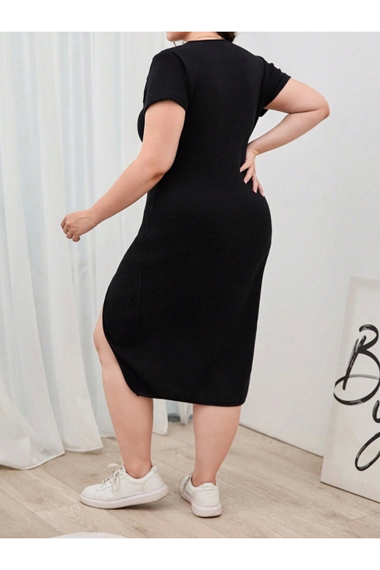 MODA Kadın Büyük Beden Kısa Kollu Yanı Yırtmaçlı Bisiklet Yaka Viskon Elbise