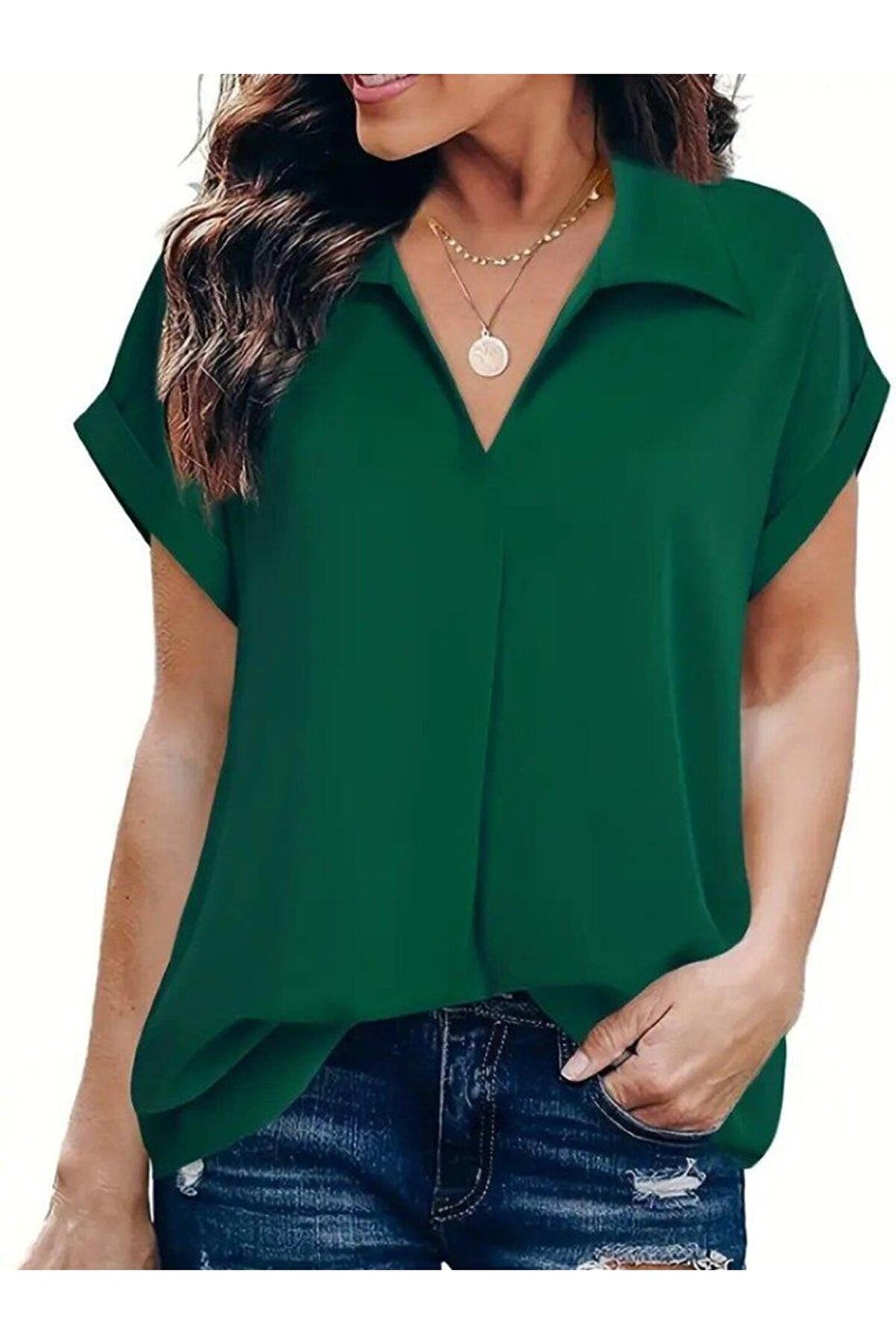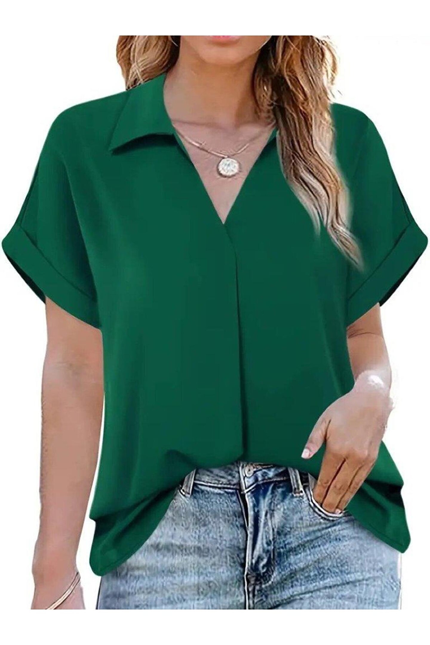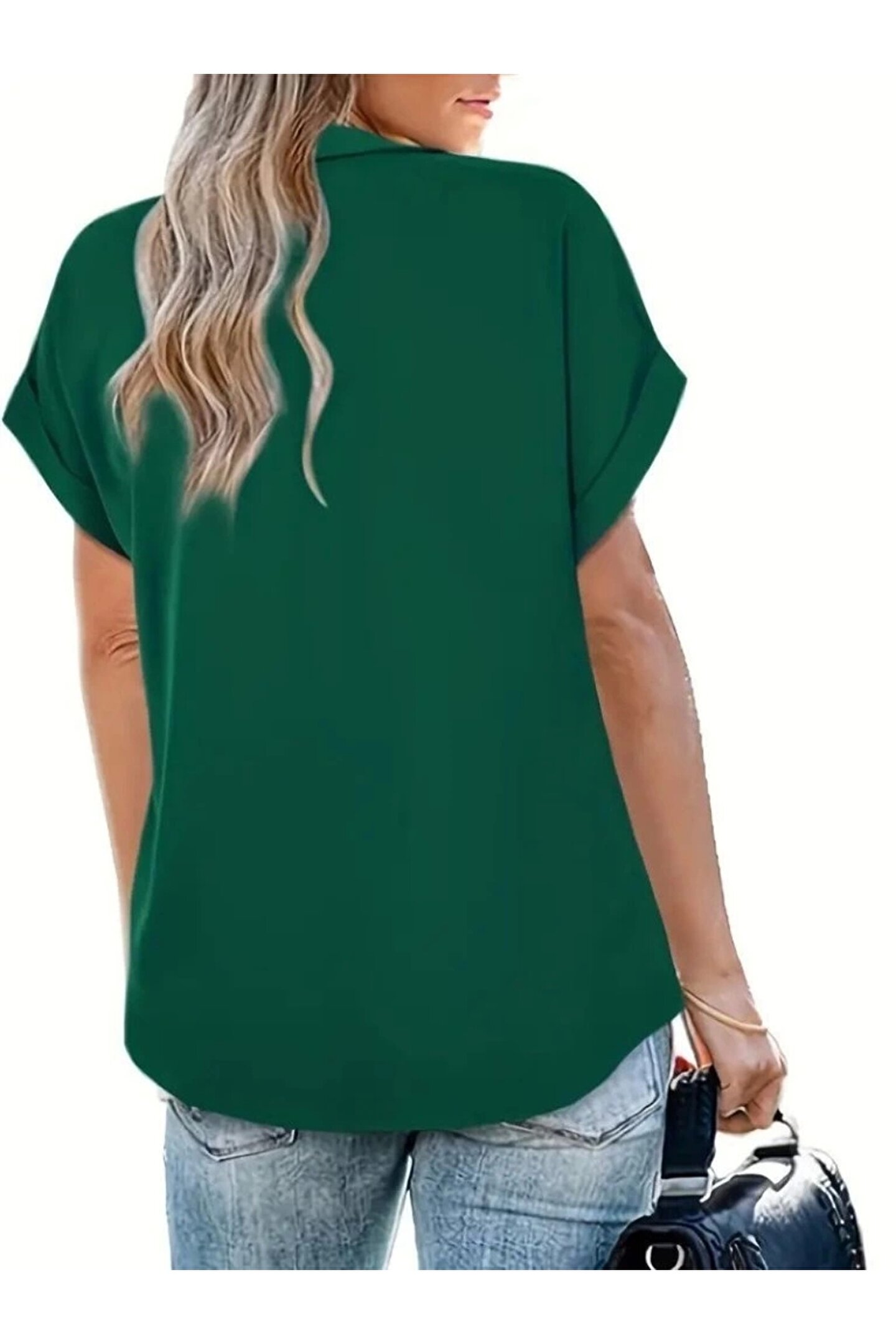MODA Kadın Kısa Kollu Yakalı Uzun Sandy Bluz