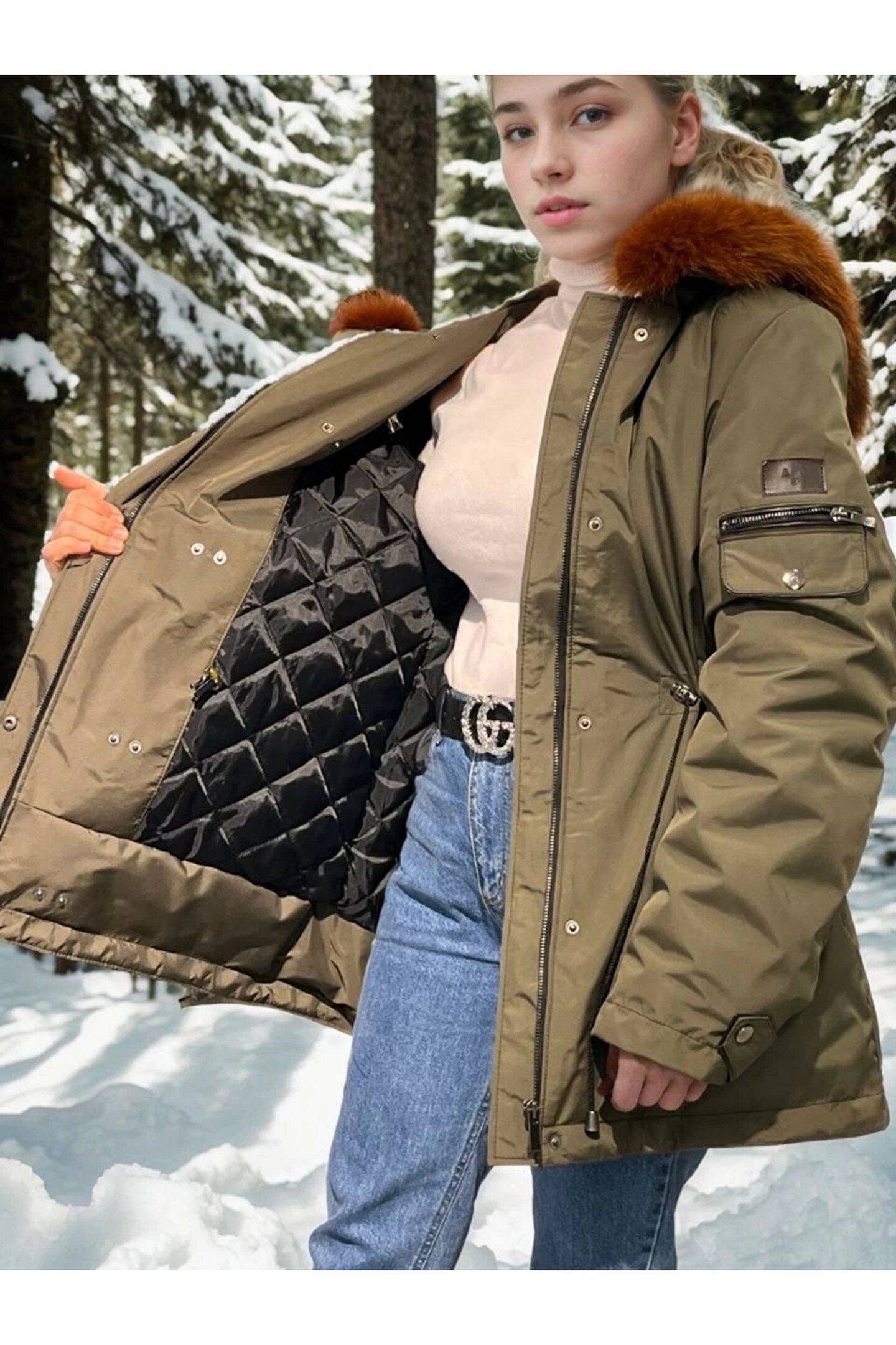 MODA Kadın Su Geçirmez Kapüşonlu Mont - Haki