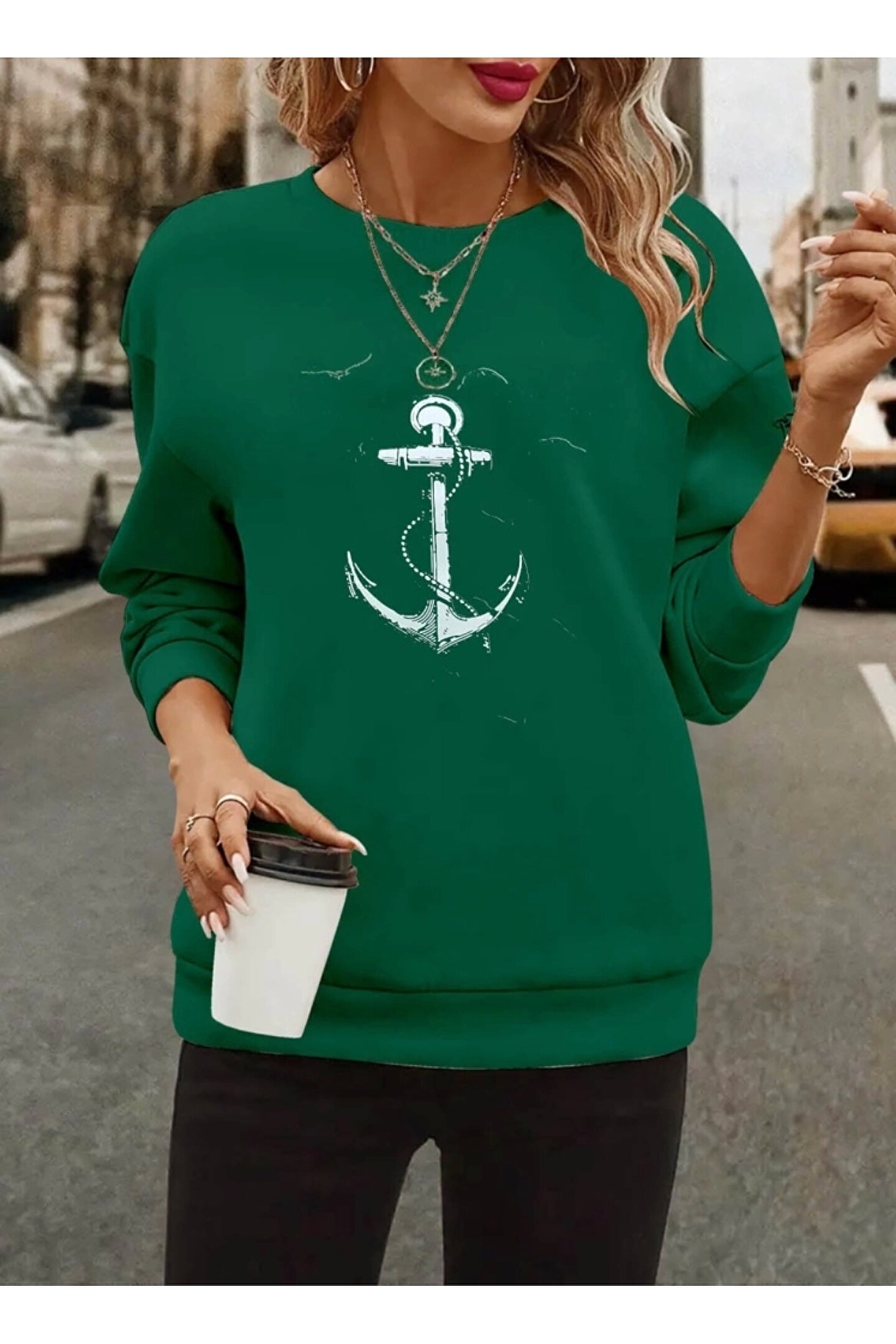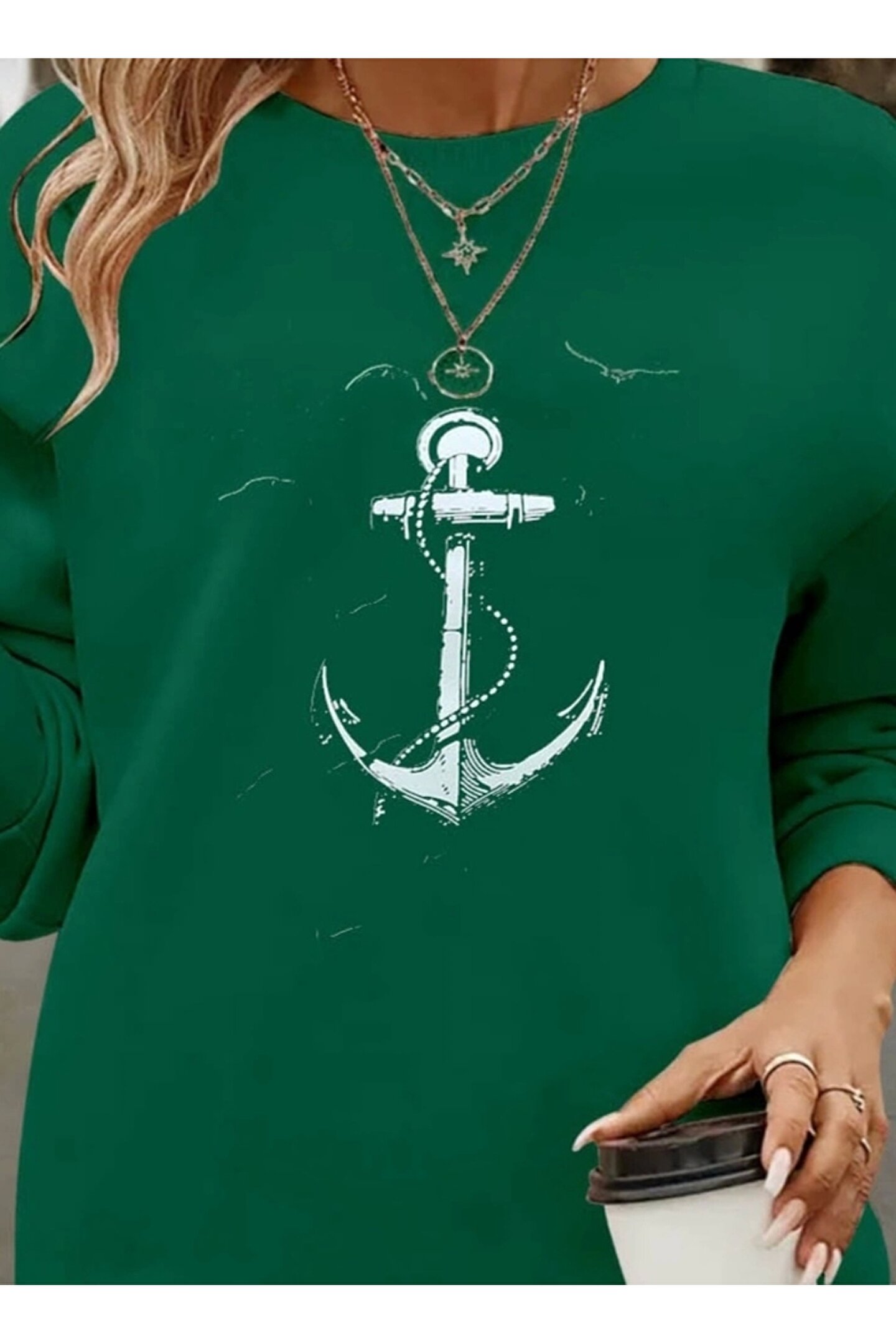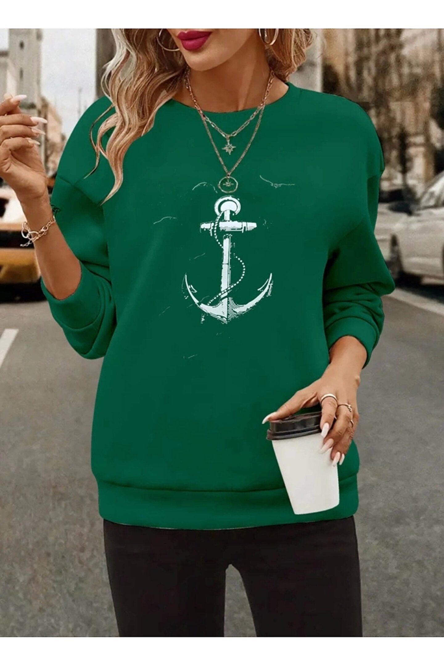 MODA Kadın Uzun Kollu Bisiklet Yaka Desenli Viskon Iki Iplik Bluz