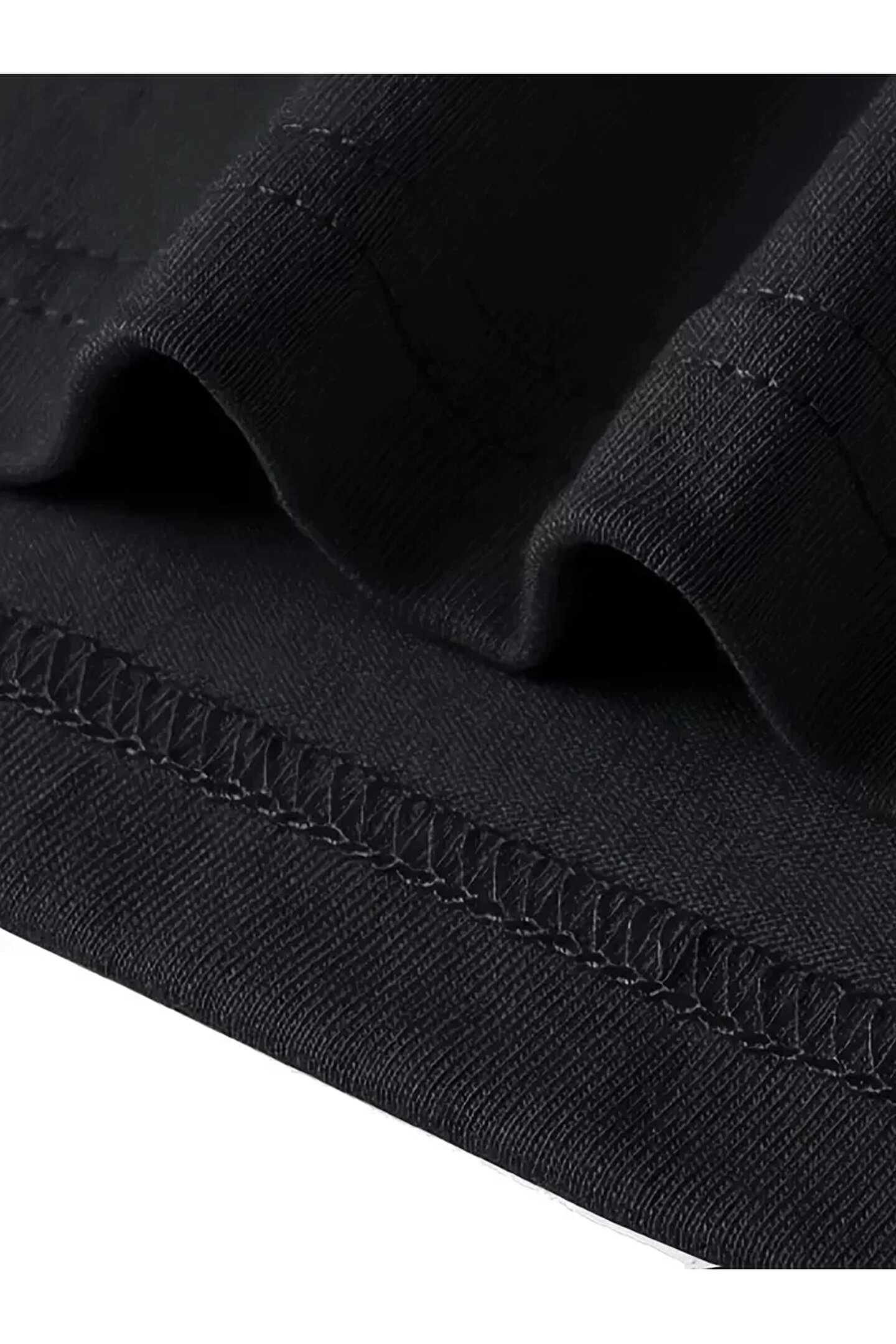 MODA Pembe Panter Baskılı Erkek Oversize Günlük Kısa Kollu Tişört İlkbahar ve Yaz için Mükemmeldir - Siya