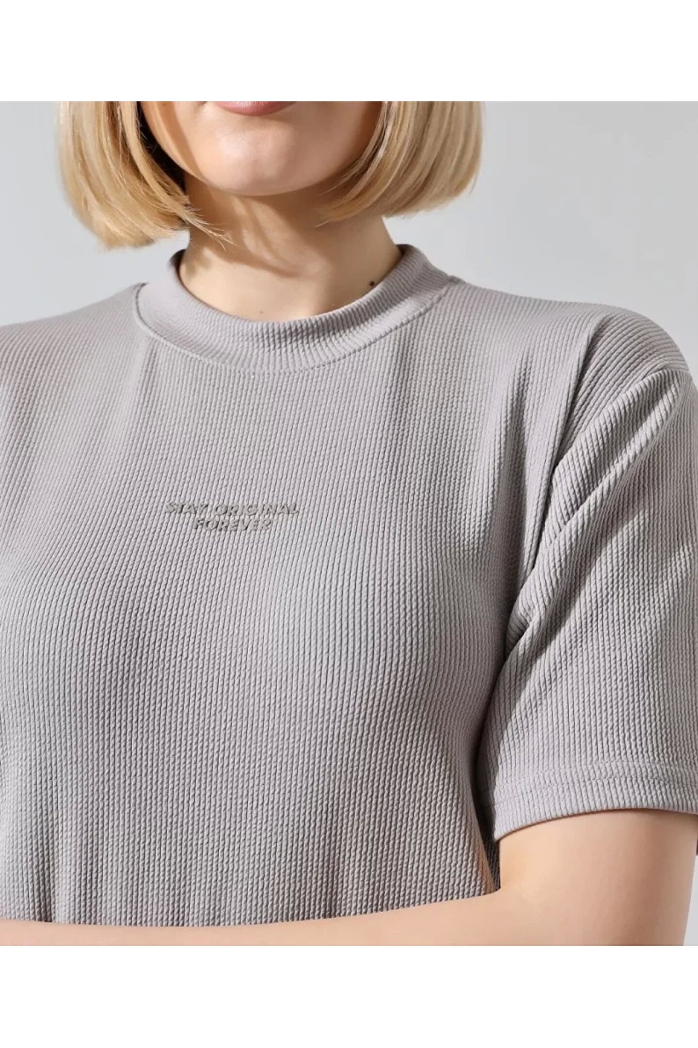 MODA Unisex Bisiklet Yaka Baskılı lim Fit Thirt Boyalı Gri