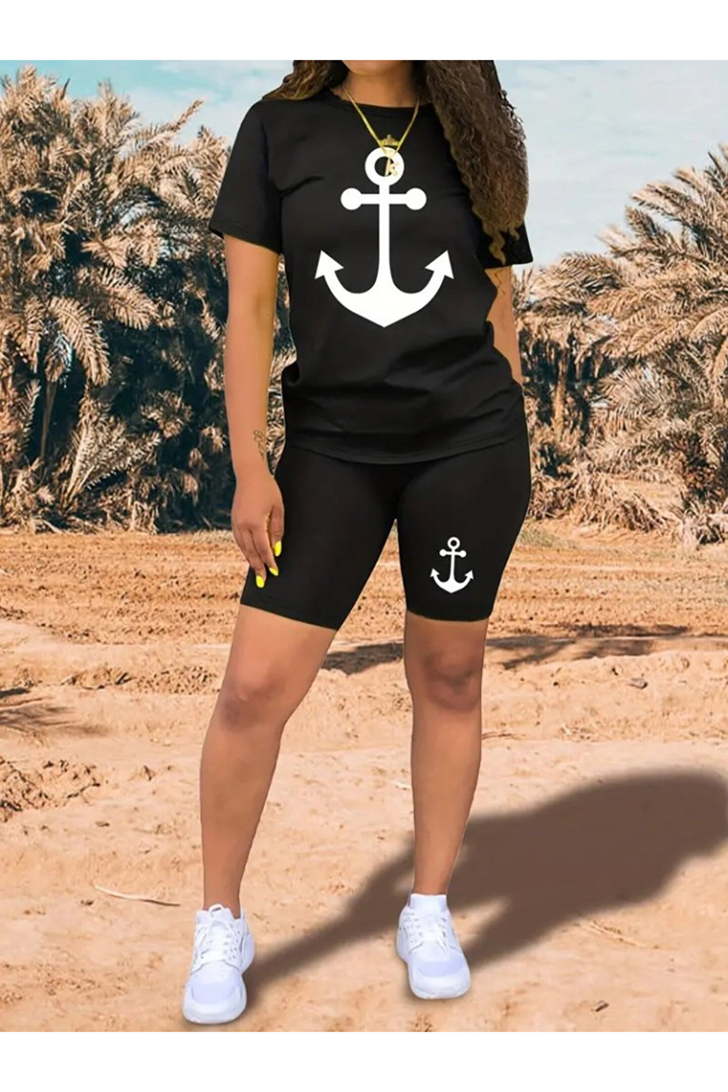 Kadın Kısa Kollu çapa Baskılı Viskon Ikili Takım