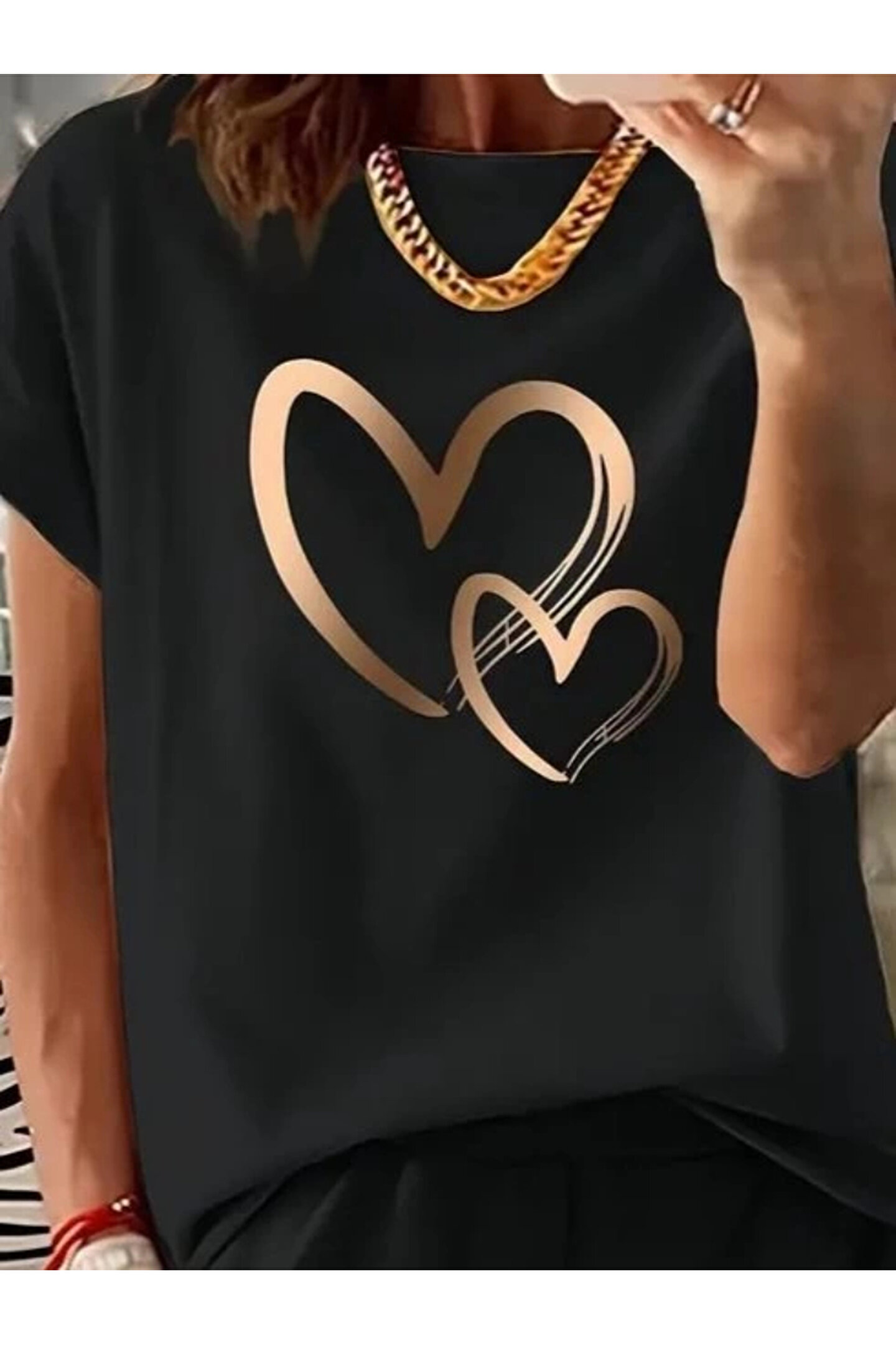 Kadın Kısa Kollu Bisiklet Yaka Viskon Iki Iplik Bluz Ve Short Ikili Takım
