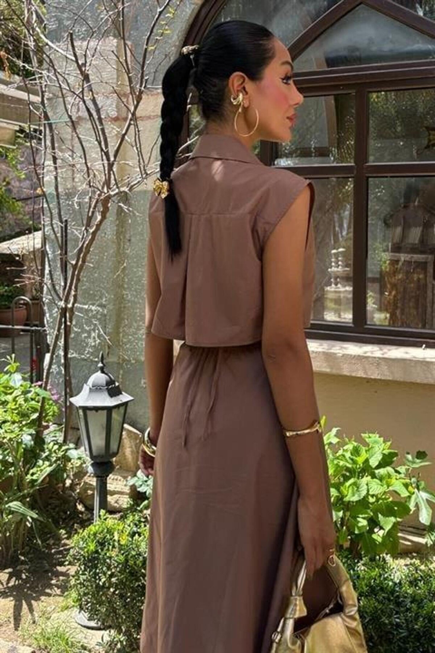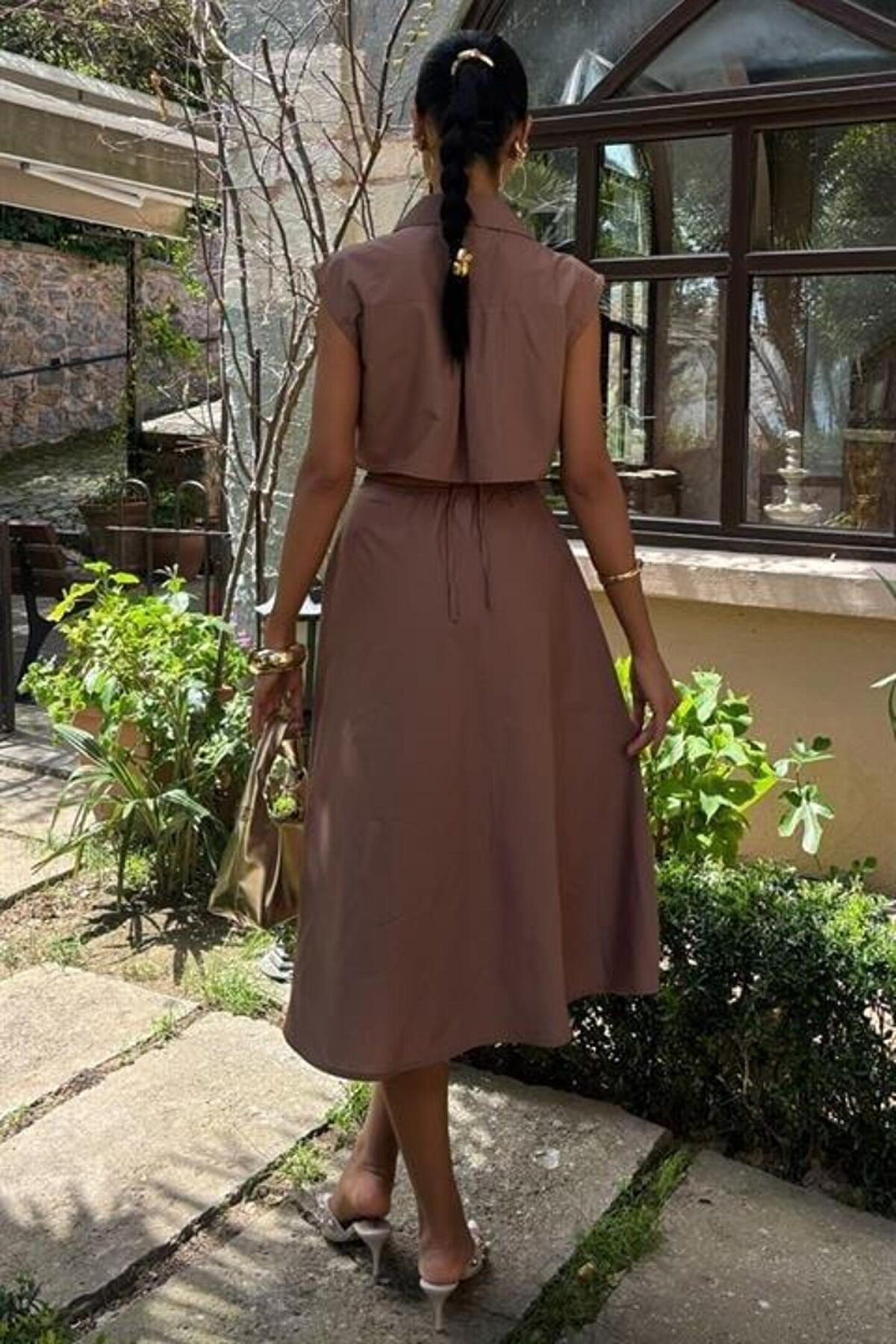Göbeği Halka Detaylı Midi Boy Elbise 2896 R8-H-K1