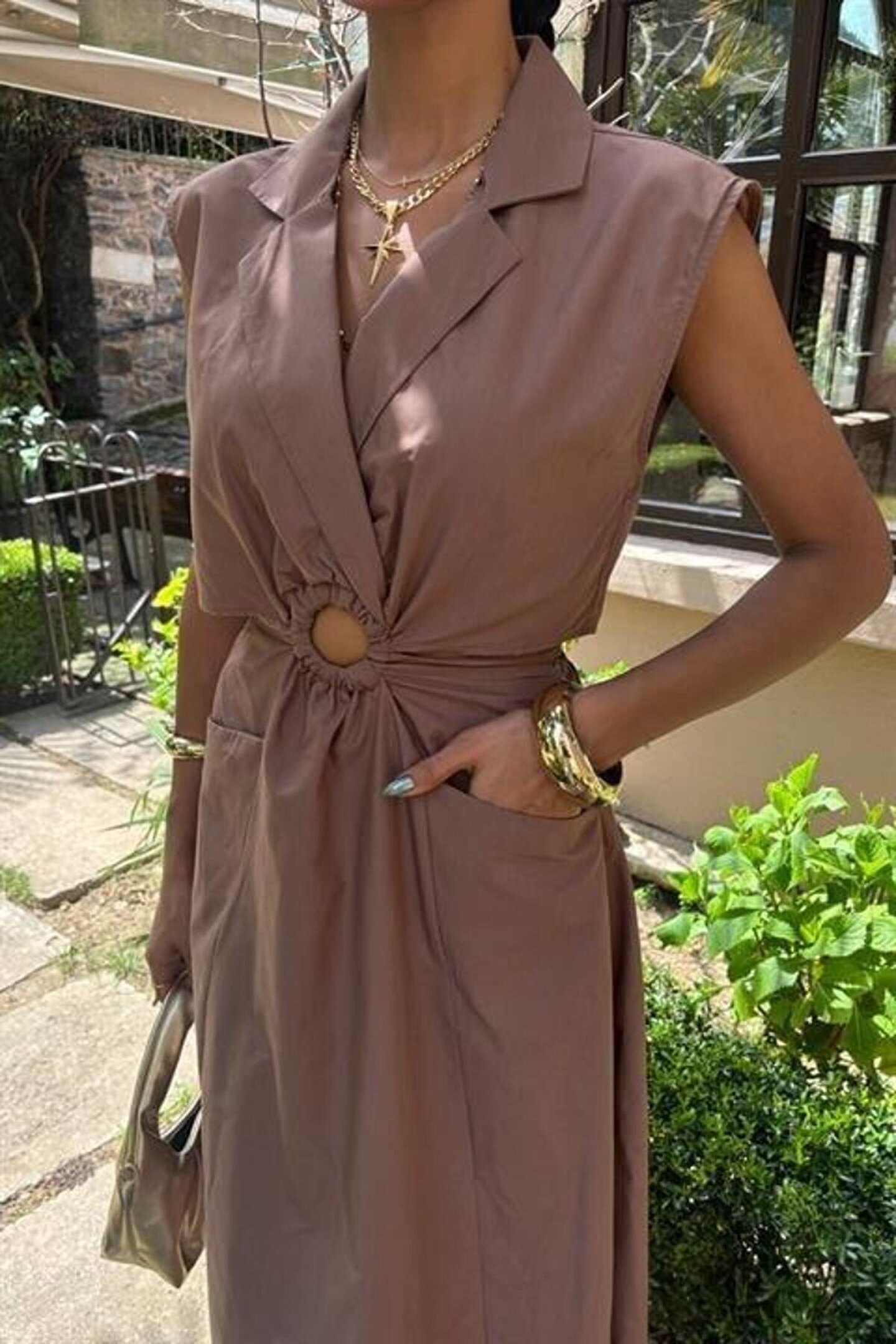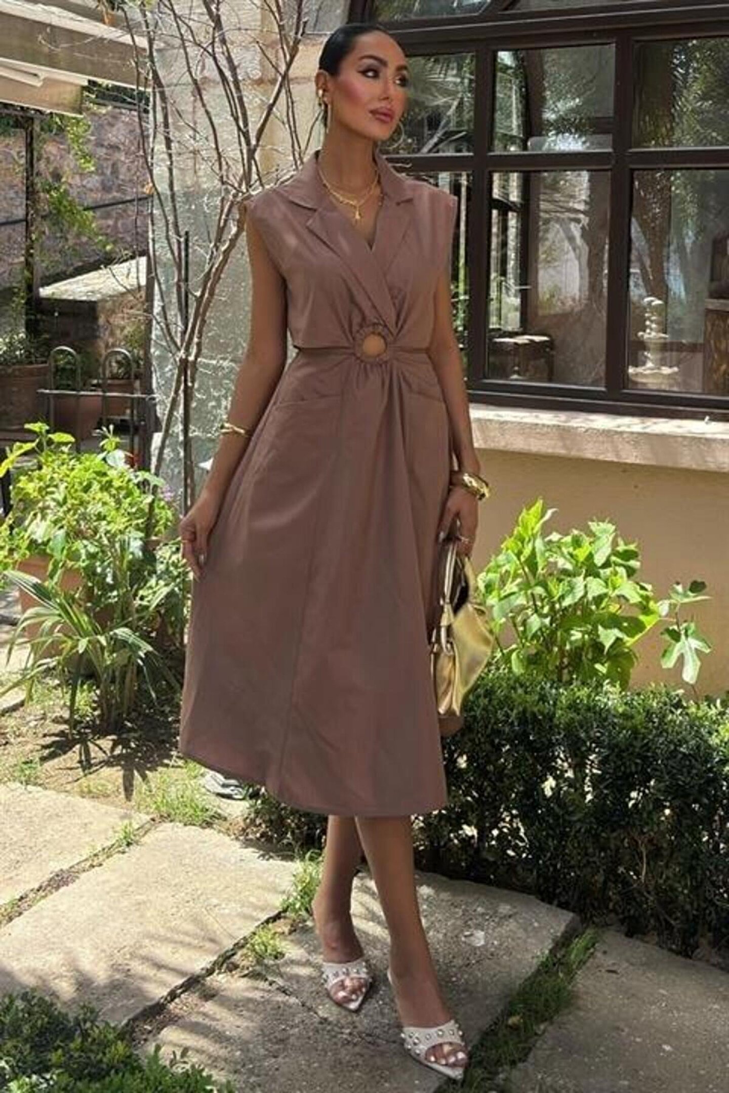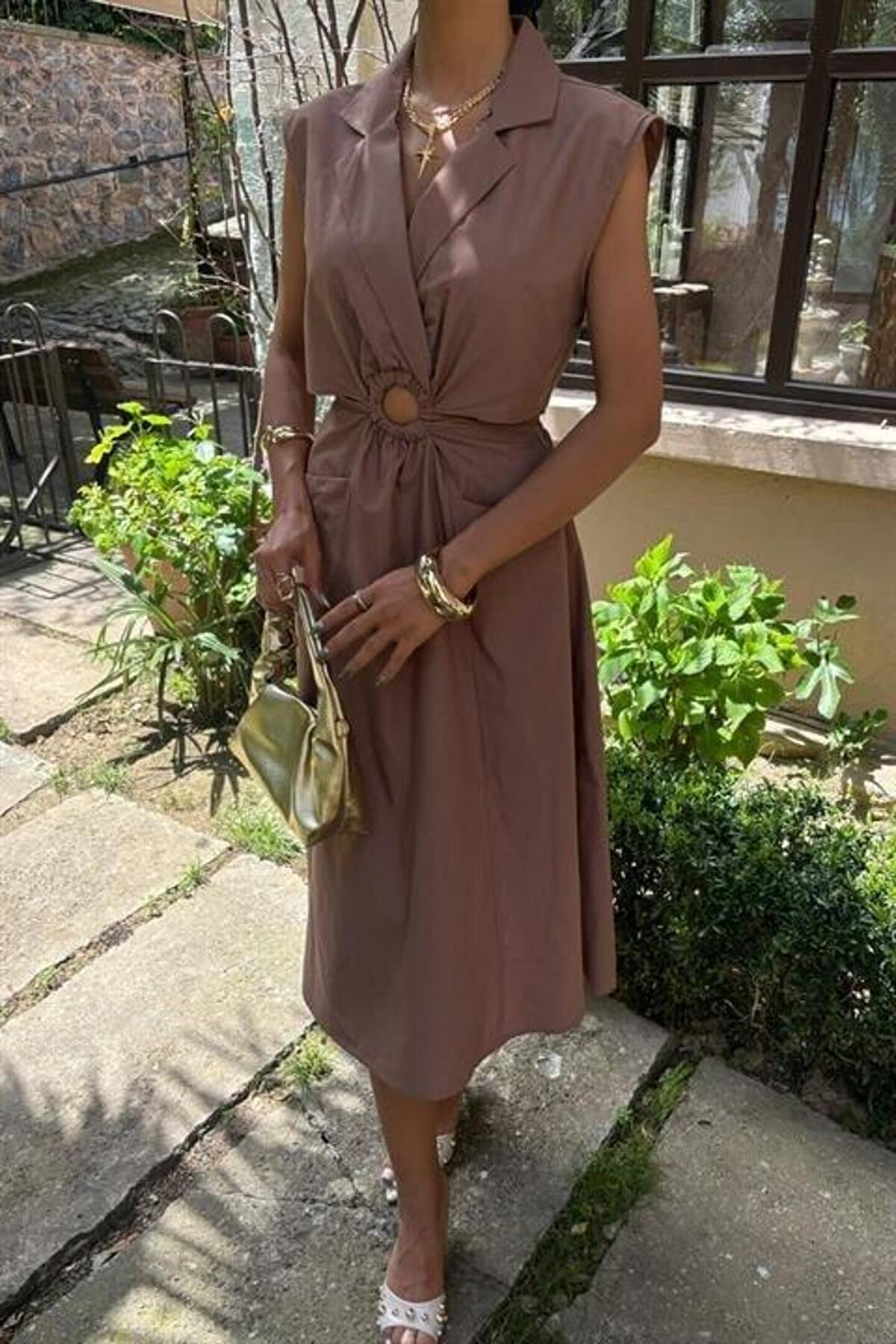 MODA ZERAFİNA Göbeği Halka Detaylı Midi Boy Elbise 2896