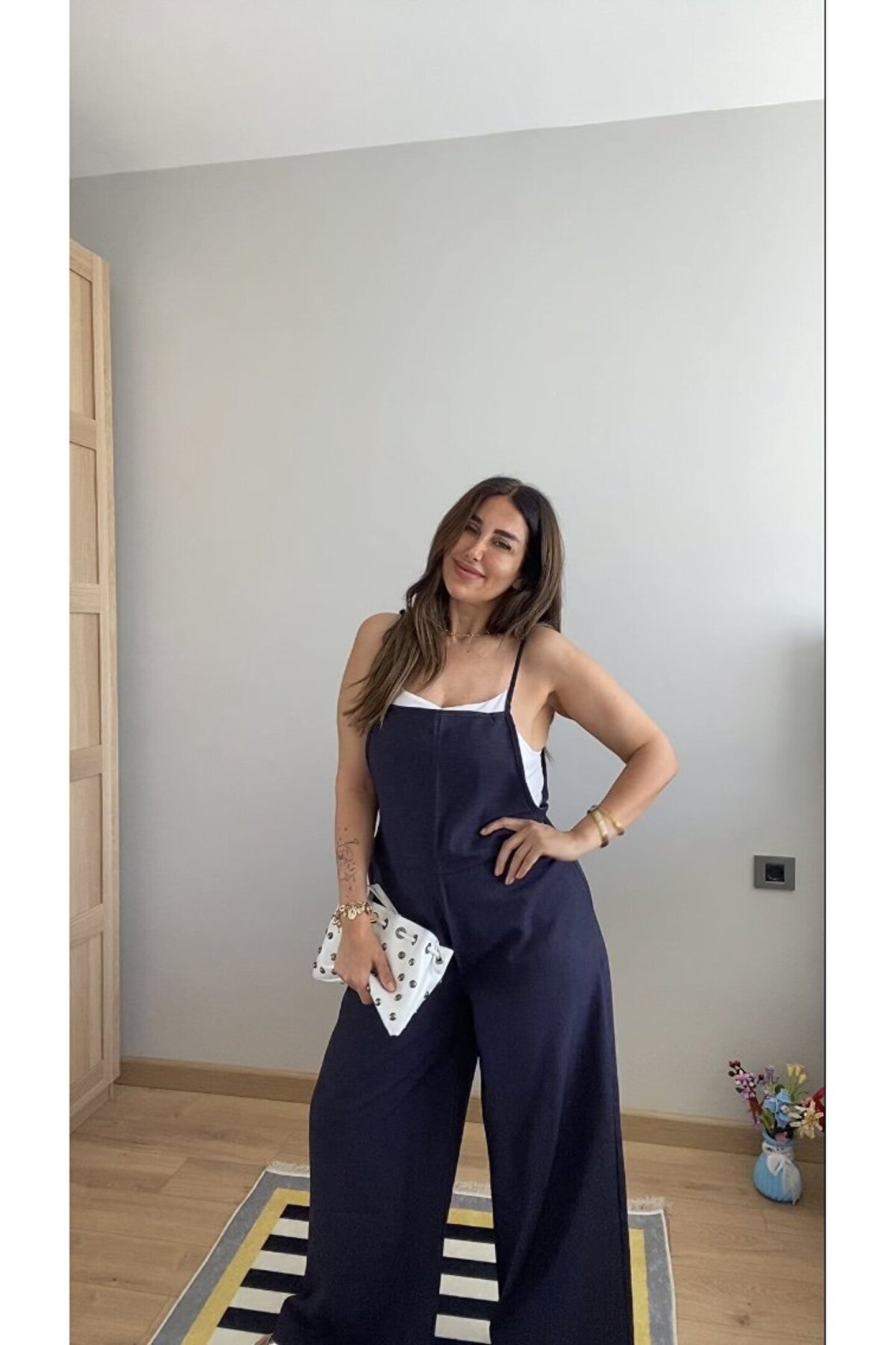 MODA55 EQURİ Kadın Askılı Yandan Fermuarlı Geniş Paçalı Valencia Tulum