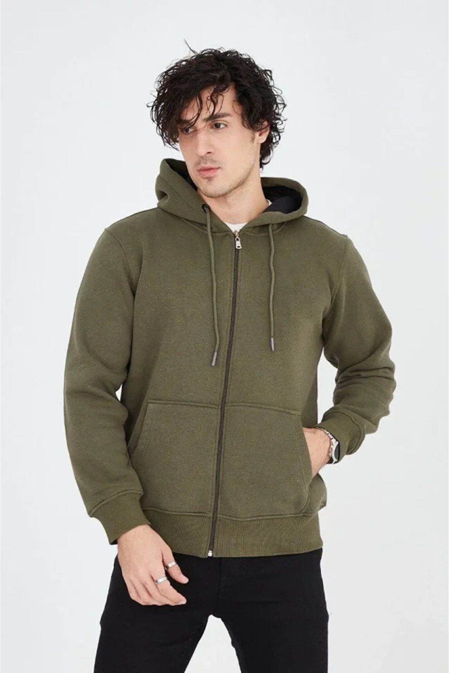 modamtn EQURİ Erkek Kapüşonlu Düz Fermuarlı Hırka - Yeşil