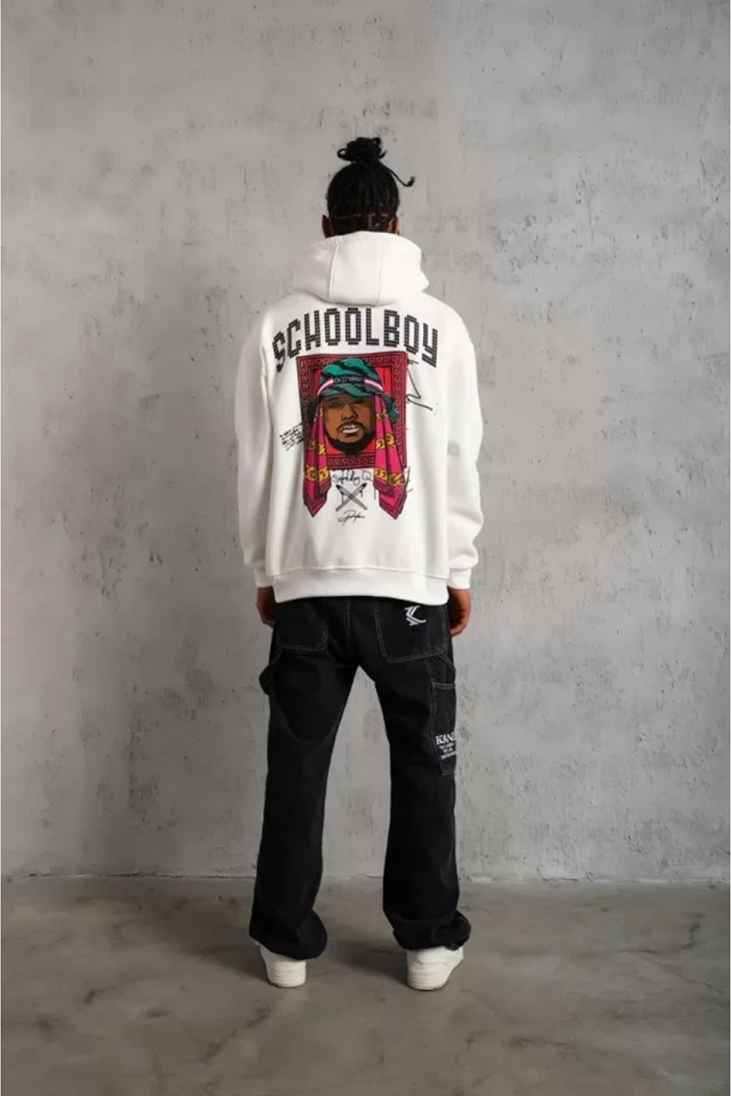 modamtn Erkek SCHOOL BOY Baskılı Kapüşonlu Sweat - Beyaz
