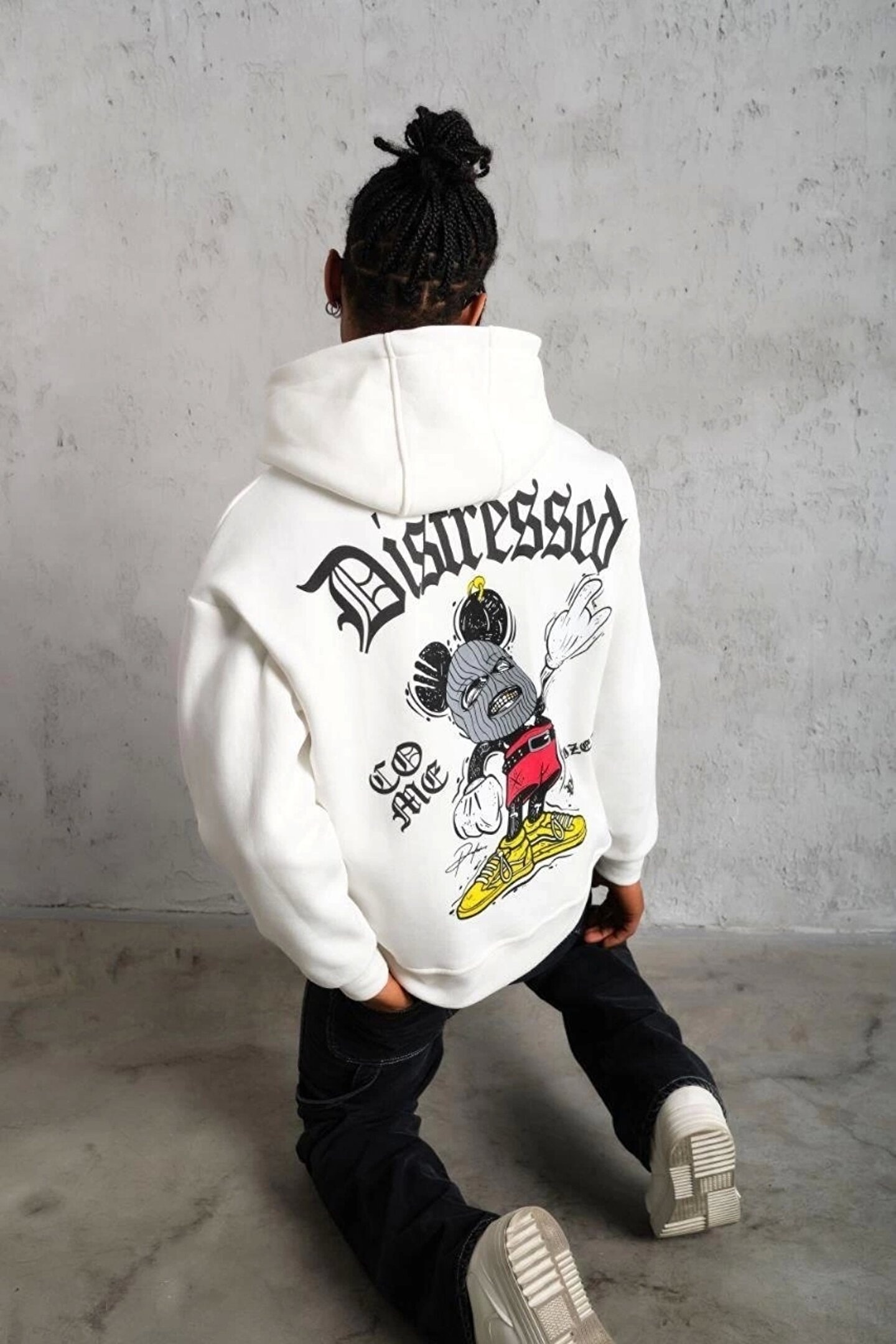 modamtn Erkek Üç İplik Baskılı Kapüşonlu Sweat - Beyaz