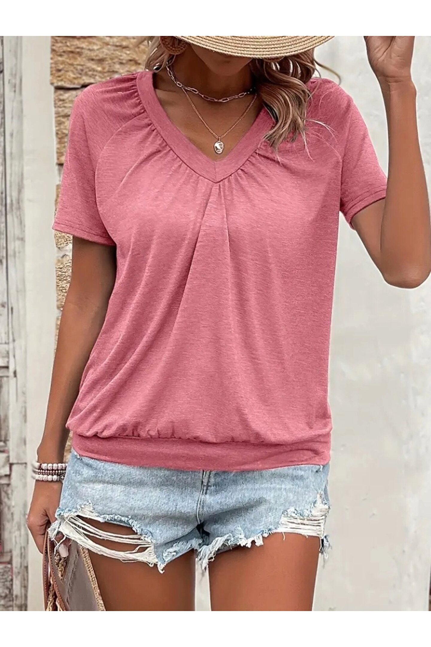 Kadın Kısa Kollu V Yakalı Büzgü Detaylı Viskon Bluz