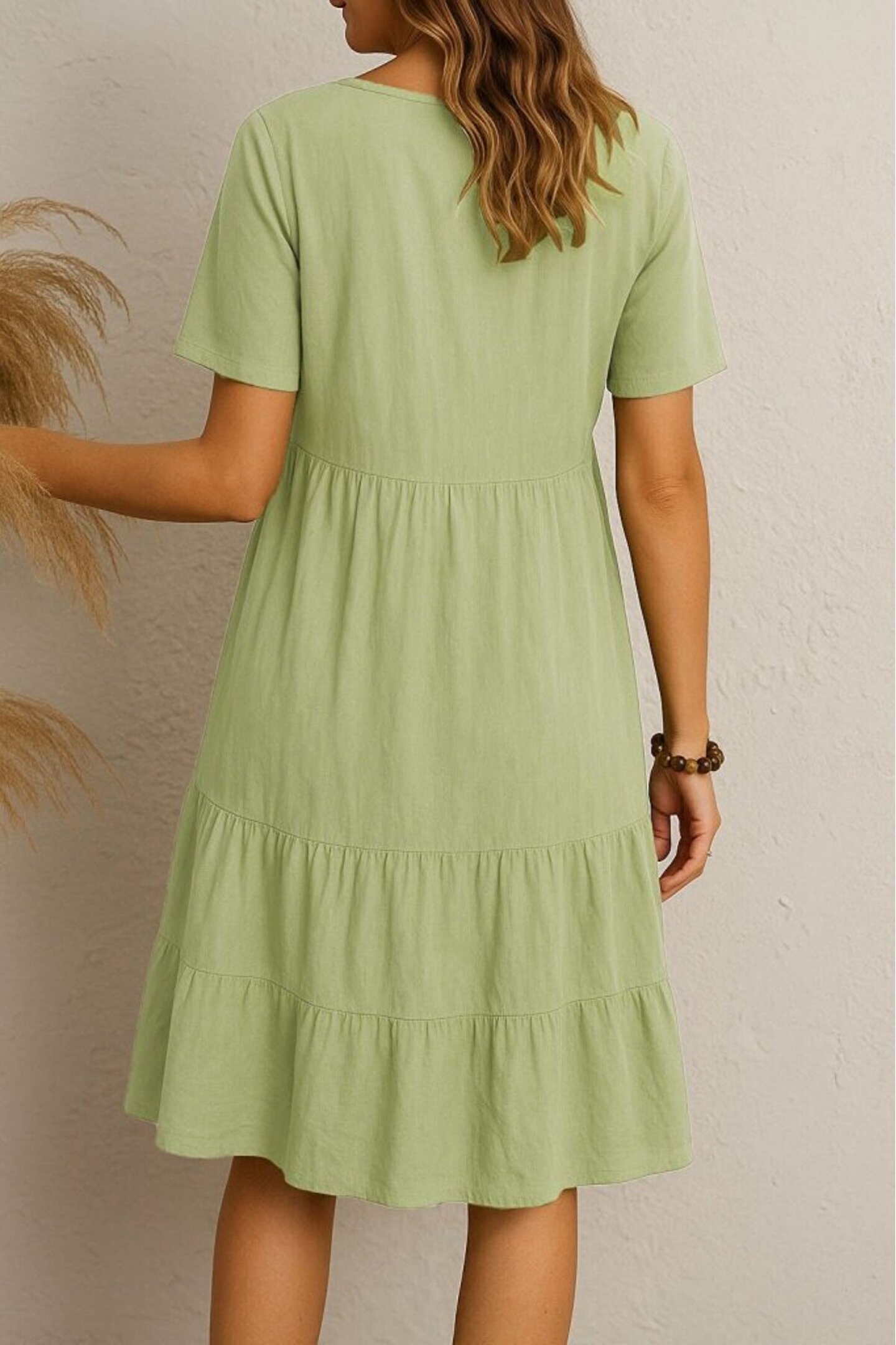 modamtn Kadın Kısa Kollu V Yakalı Fırfırlı Bürümcük Elbise