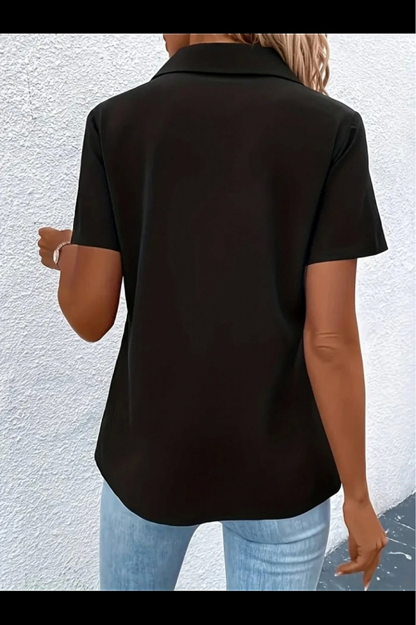MODAVERA Kadın Kısa Kollu Ceket Yaka önü Fermuarlı Cep Detay Kısa Kol Ithal Krep Bluz