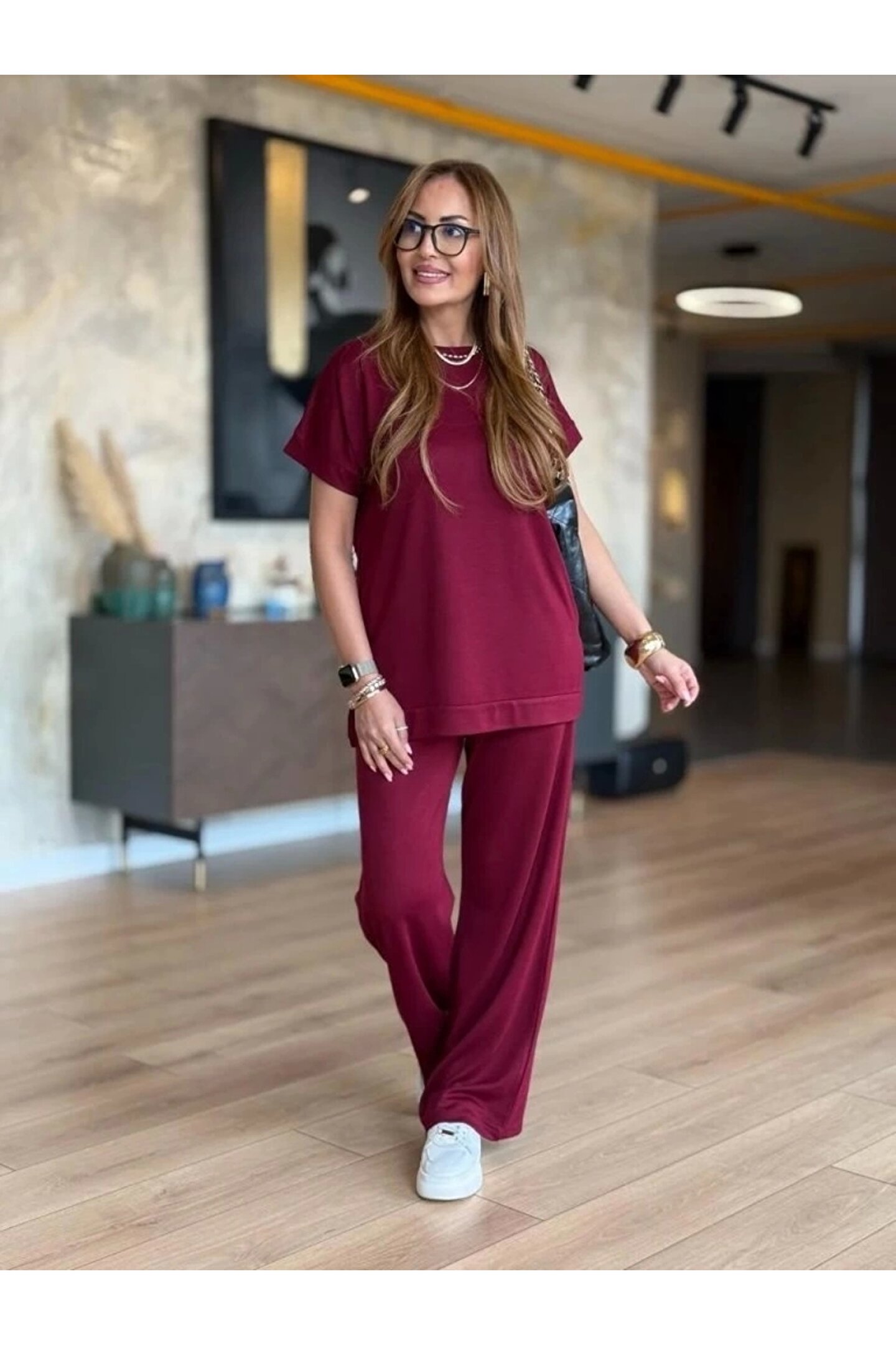 Modayakamoz Kadın Kısa Kollu Bisiklet Yaka Viskon Iki Iplik Bluz Ve Pantolon Ikili Takım