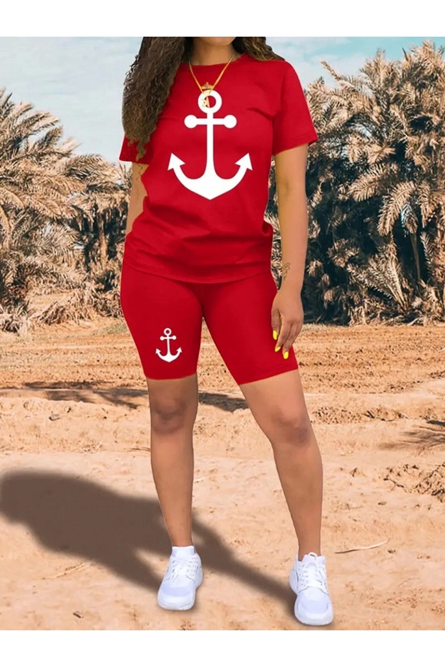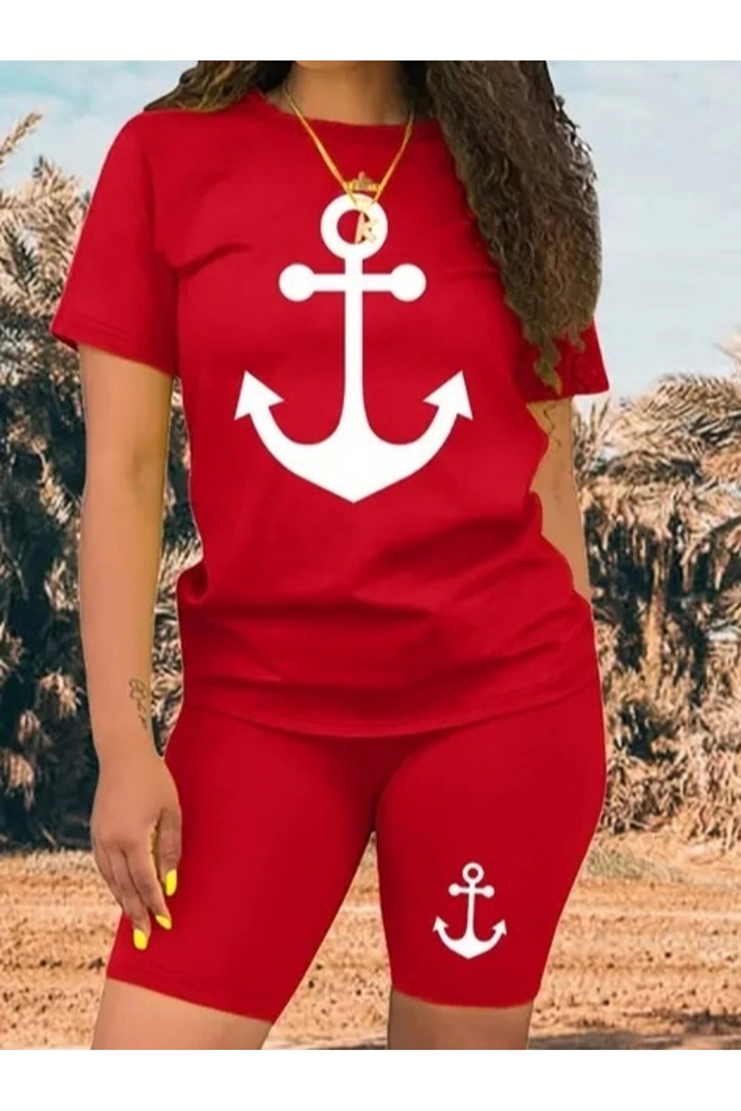 Kadın Kısa Kollu çapa Baskılı Viskon Ikili Takım