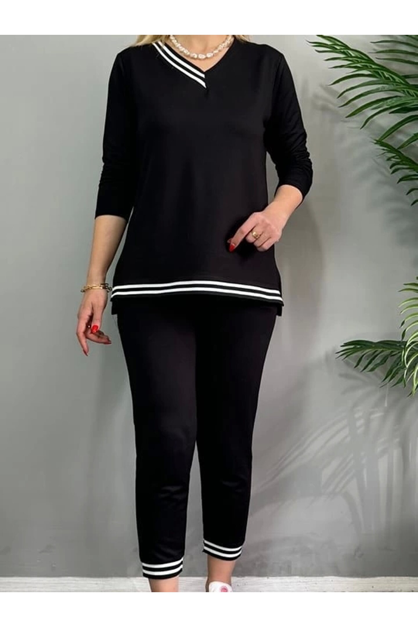 Modayakamoz Kadın Yeni Sezon Uzun Kollu Ribana Detay Ikili Takım