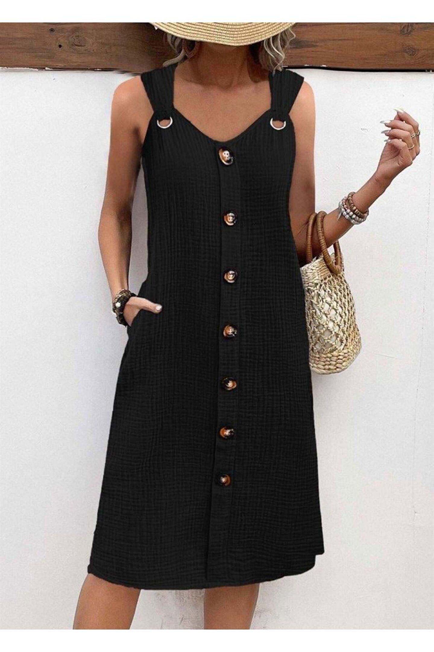 Moderie Butik Kadın Askılı V Yakalı önden Düğmeli Narin Elbise
