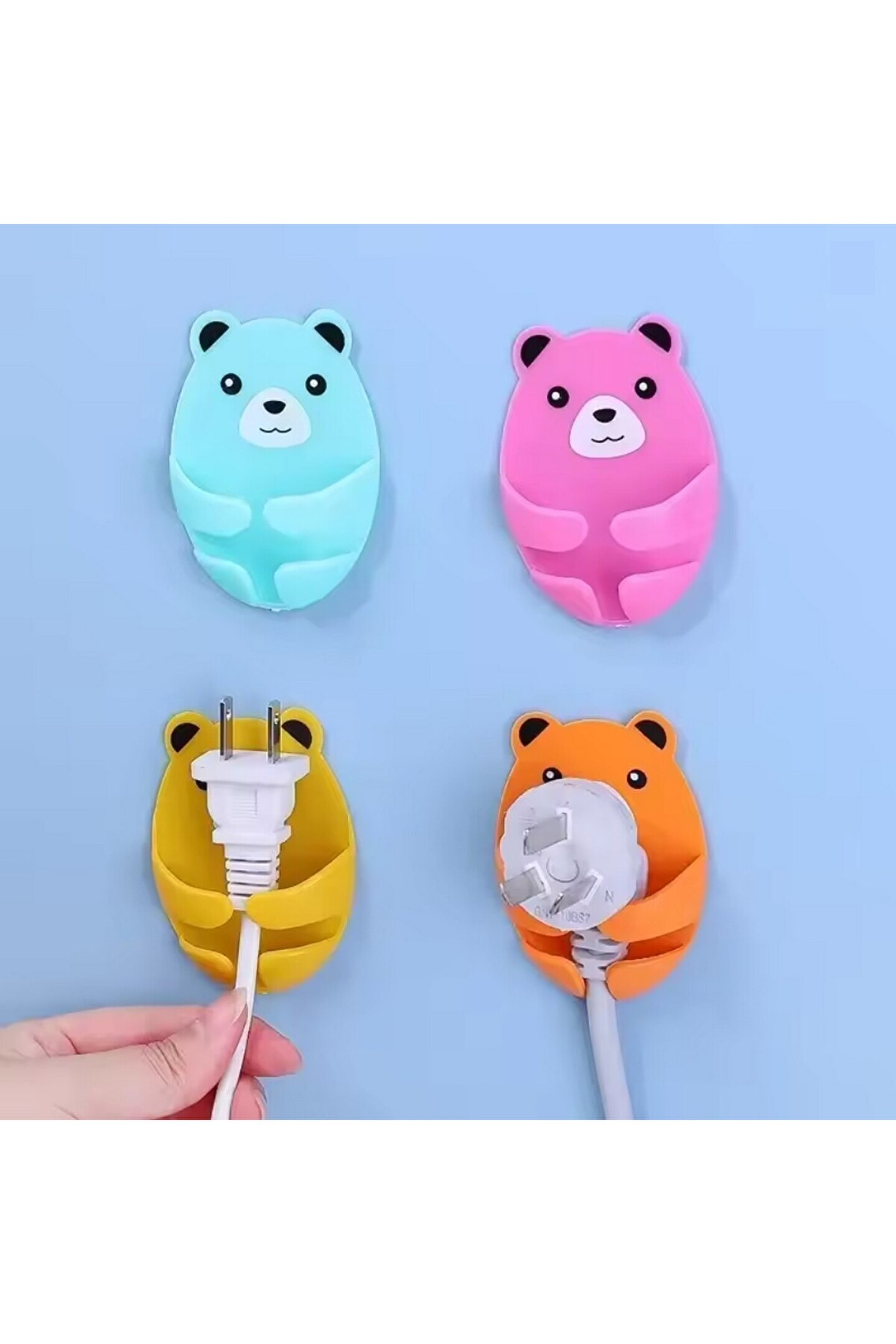 Ayıcık Desenli Kablo Fiş Tutucu Düzenleyici, 4 Adet, Fiş, Kablo, Küçük Aksesuar Tutucu Güçlü yapıştırıcı (Ev, Ofis, Otel vb.; Alanlar)
