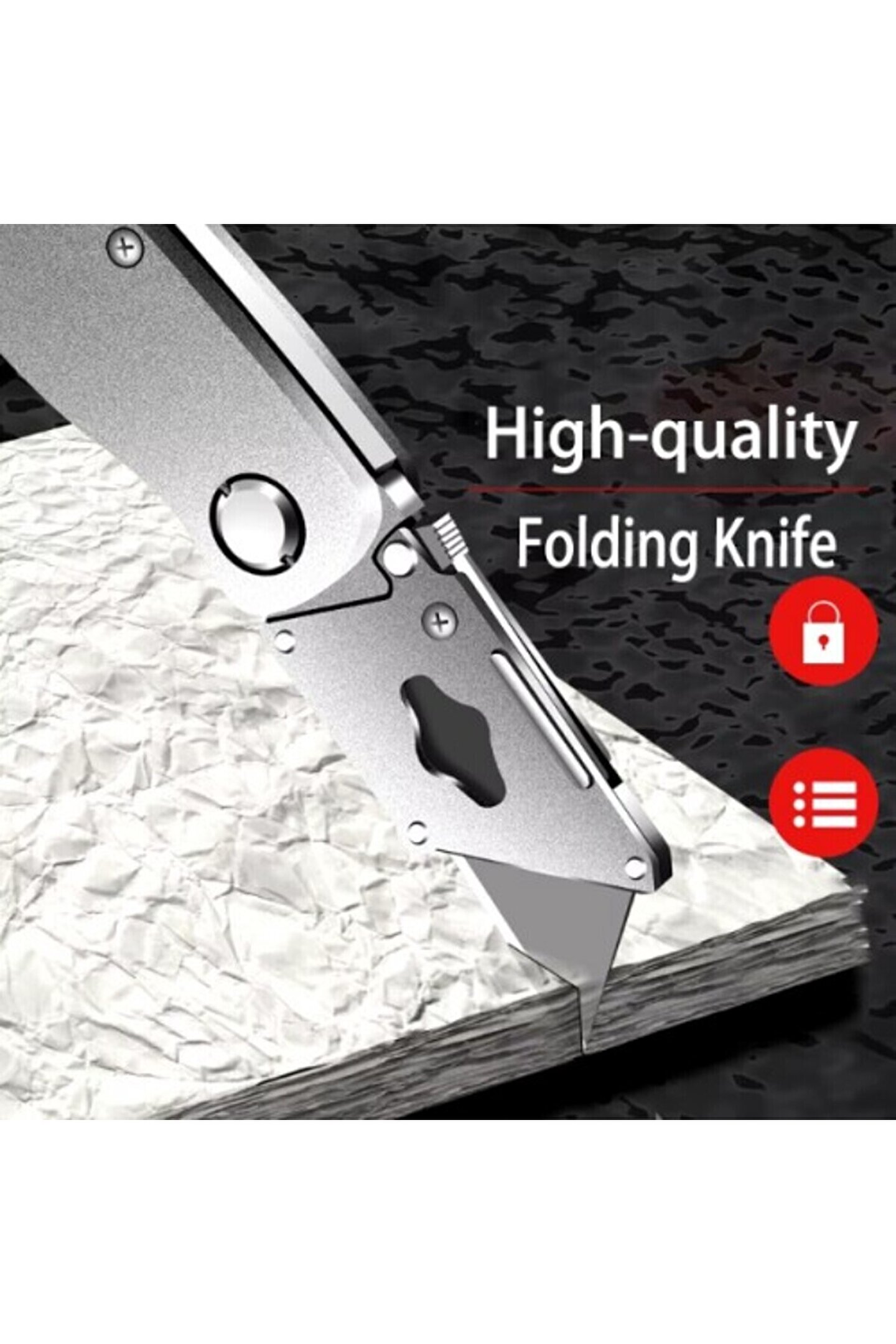 HALI MAKET BIÇAĞIÜrün AçıklamasıDayanıklı ve ergonomik tasarımıyla halı maket bıçağı, çeşitli yüzeylerde hassas ve kontrollü kesimler yapmak isteyen kullanıcılar için ideal bir çözümdür.; Ergonomik ve kaymaz sap tasarımı, uzun süreli kullanımlarda el yorgunluğunu en aza indirir.; Bıçak, köreldiğinde kolayca değiştirilebilir ve paket içinde yedek bıçaklar bulunur.; Güvenli kullanım için kilit mekanizması ile donatılmıştır, bu mekanizma kesim sırasında bıçağın kaymasını engeller.; Katlanabilir tasarımı sayesinde taşınması ve muhafaza edilmesi oldukça kolaydır.; Paslanmaz çelik bıçağı ve dayanıklı gövdesi ile uzun ömürlü kullanım sağlar.; Ürün ÖzellikleriHalı maket bıçağı, ergonomik ve kaymaz sap tasarımıyla kullanıcı konforunu artırır.; Paslanmaz çelik bıçak, dayanıklı plastik ve metal gövdeyle desteklenmiştir.; Değiştirilebilir bıçak özelliği, pratik bir kullanım sunar.; Kilit mekanizması, güvenli bir kullanım sağlar ve katlanabilir yapısı ürünü kolay taşınabilir hale getirir.; Paket İçeriği1 adet halı maket bıçağıYedek bıçaklar