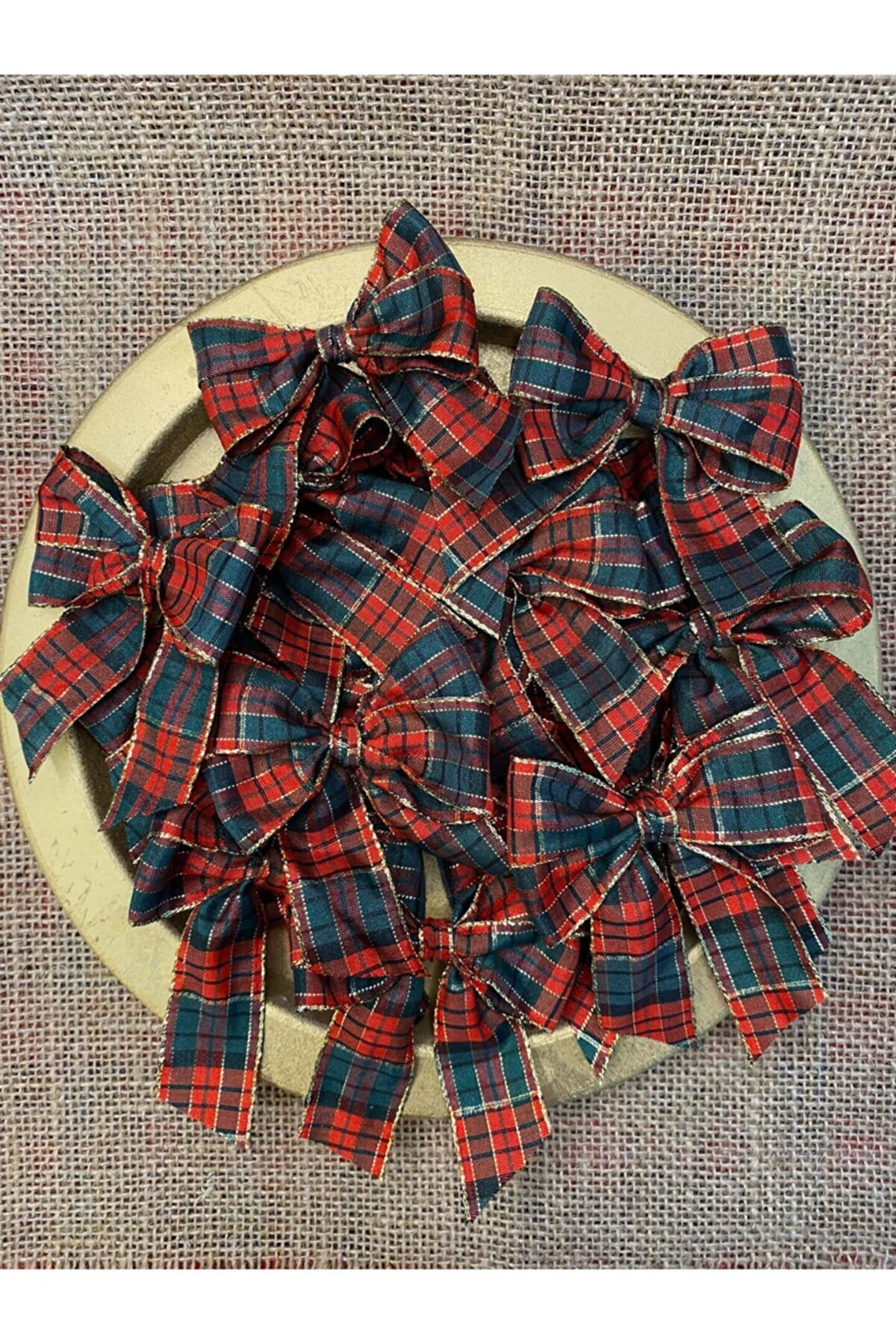 Motif Aksesuar 10lu Ekose Desenli Kenarları Altın Detaylı Fiyonk Yılbaşı Christmas