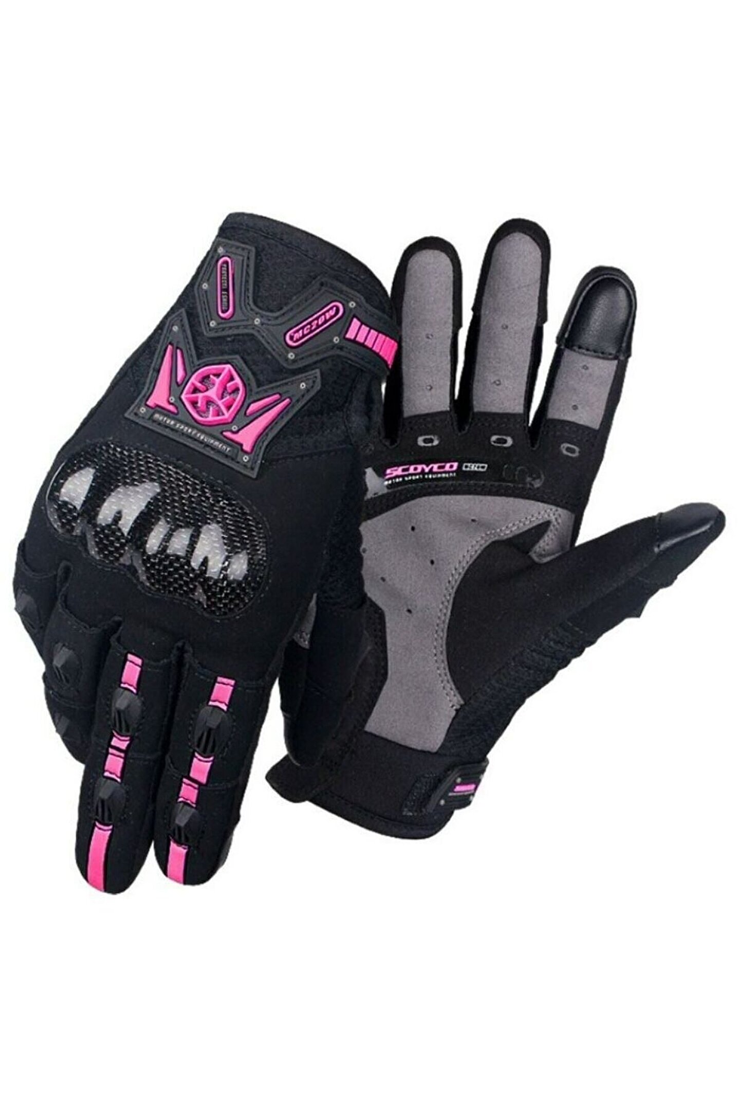 Motosiklet Korumalı Yazlık Eldiven Karbon Fiber Telefon Dokunmatikli Motor Eldiveni Pink