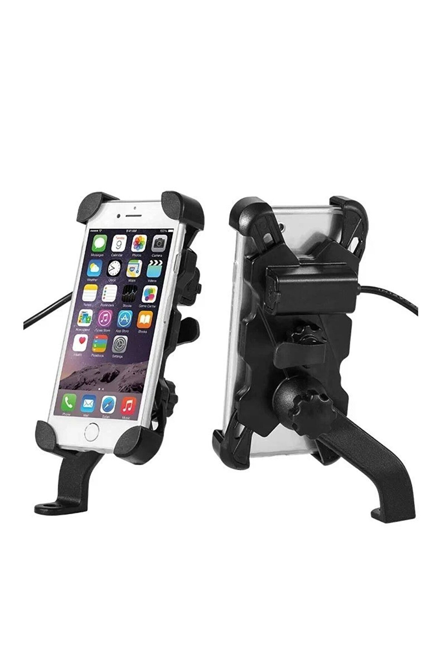 Motosiklet Şarjlı Telefon Tutucu Scooter Unıversal Metal Ayna ve Gidon Bağlantı Aparatlı