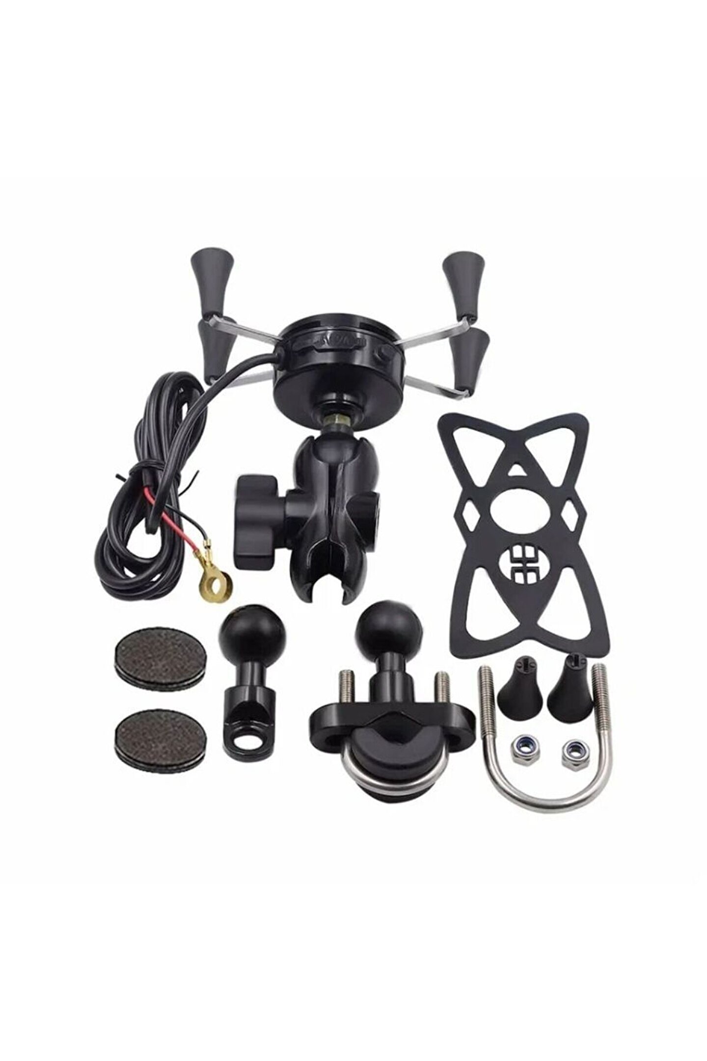 Motosiklet Şarjlı Telefon Tutucu Vıtesli Unıversal Gidon Bağlantı Aparatlı Motor Telefon Tutucu