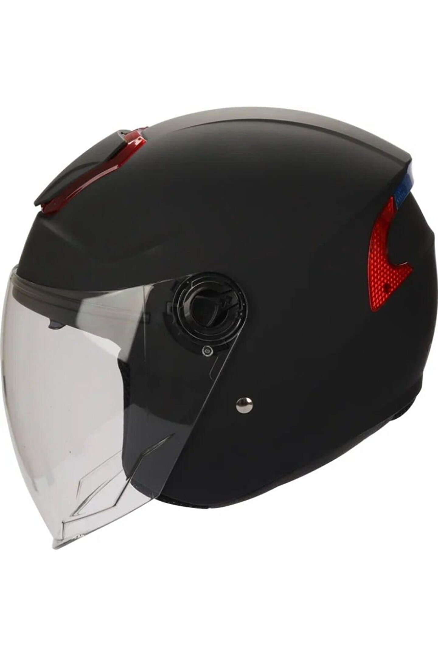 Motosiklet Yarım Camlı Arka Reflektörlü Güneş Vizörlü Kask Mat Black