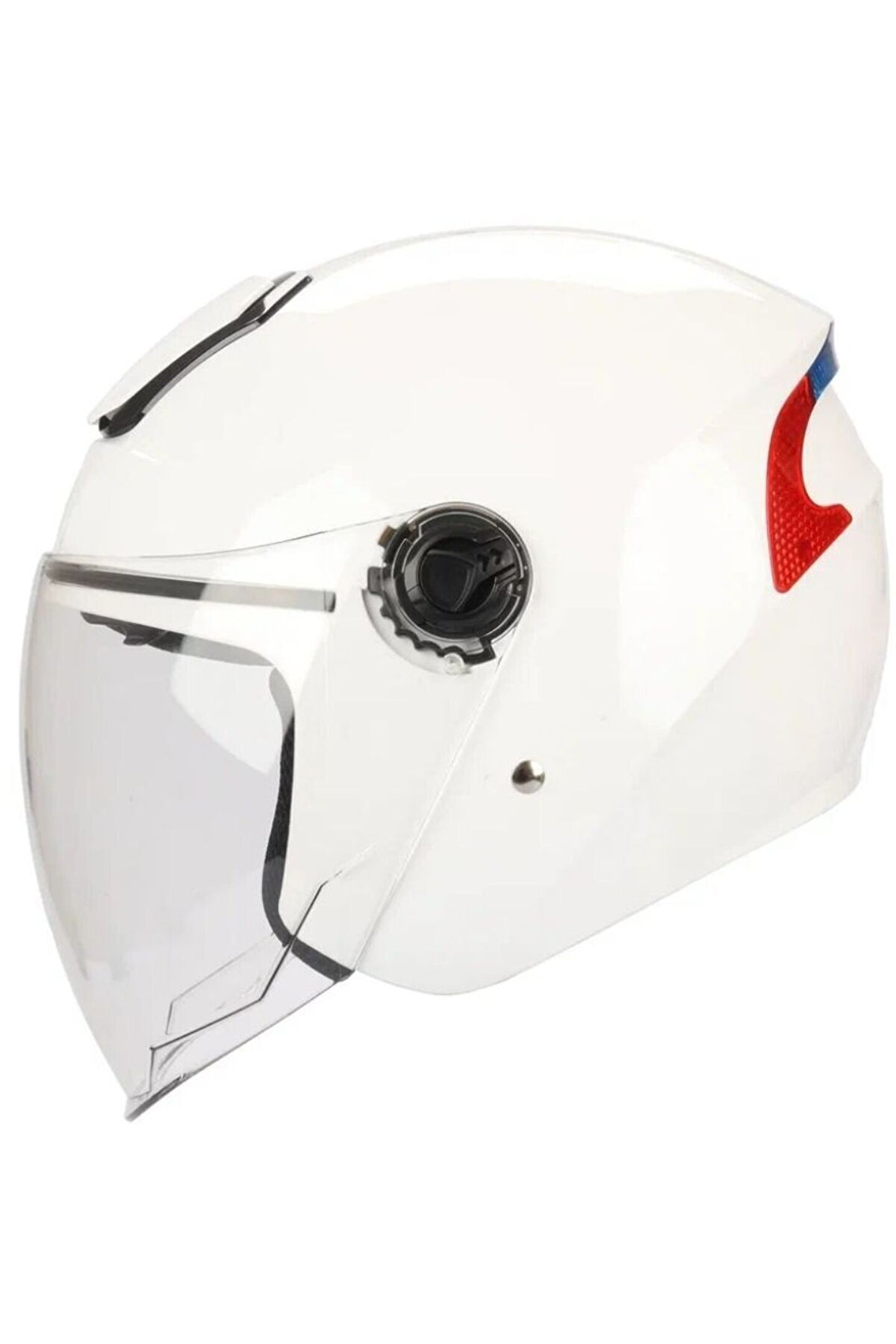 Motosiklet Yarım Camlı Arka Reflektörlü Güneş Vizörlü Kask Whıte