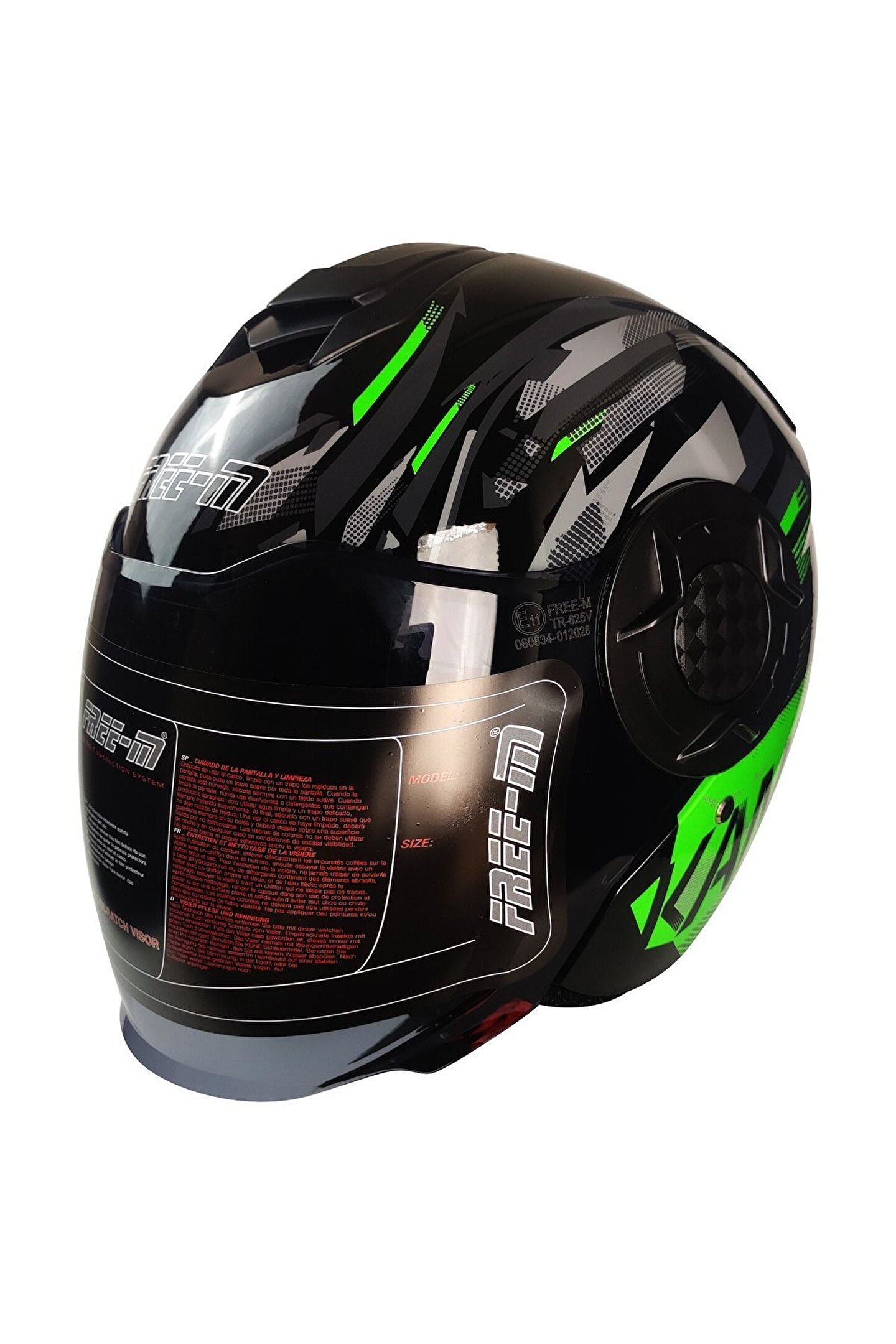 Motosiklet Yarım Kask Double Güneş Vizörlü Ece Sertifikalı Abs Material Motor Kaskı Green Arrow