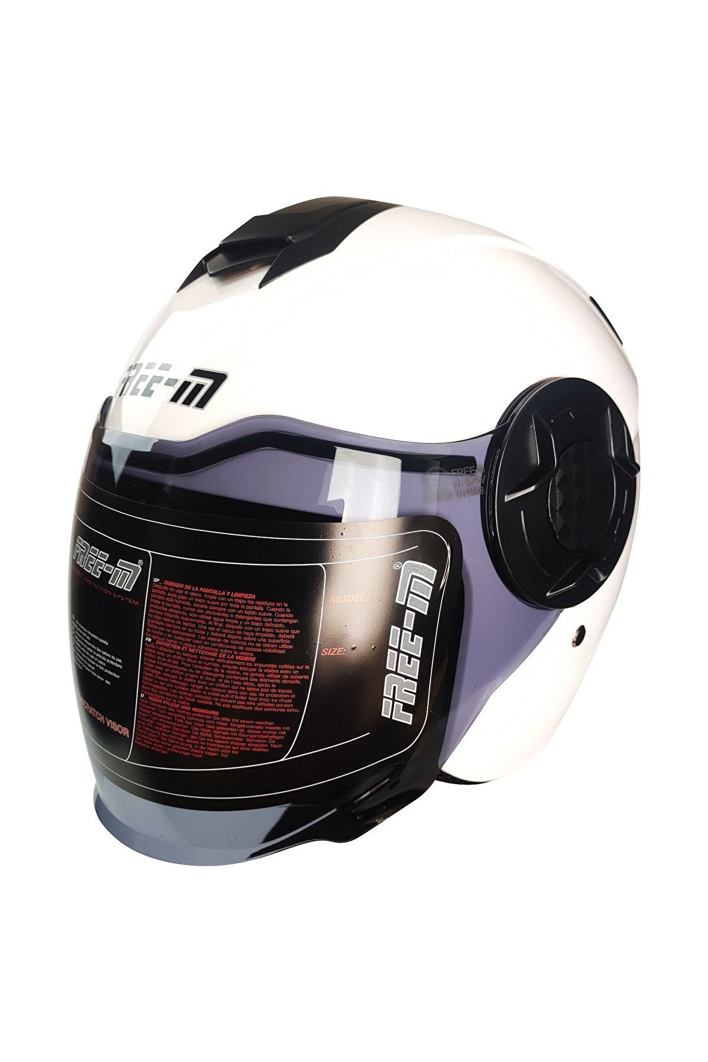 Motosiklet Yarım Kask Double Güneş Vizörlü Ece Sertifikalı Abs Material Motor Kaskı White