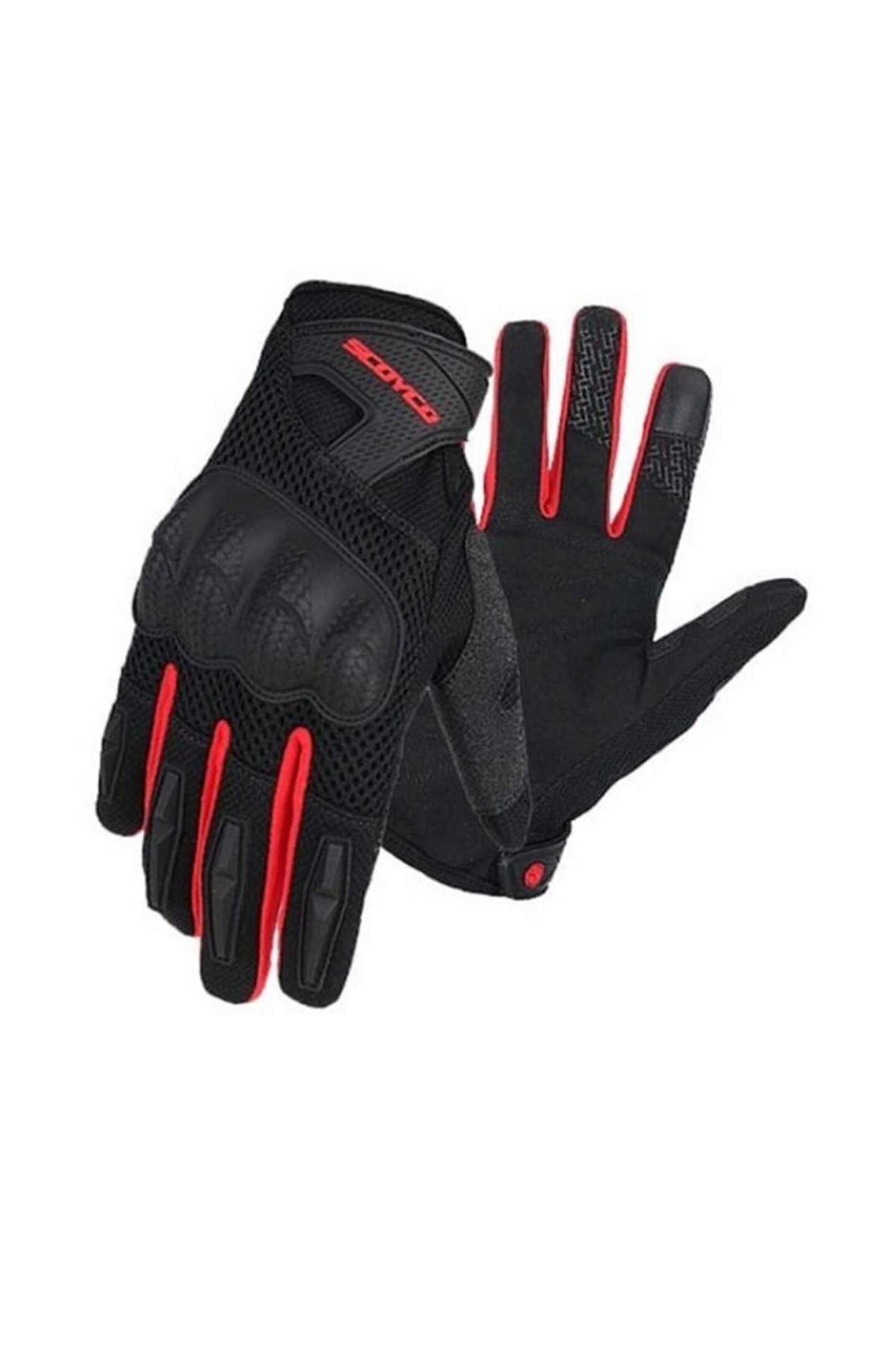 Motosiklet Yazlık Eldiven Darbe Emici Koruma Fileli Mesh Kumaş Tel Dokunmatik Motor Eldiveni Red