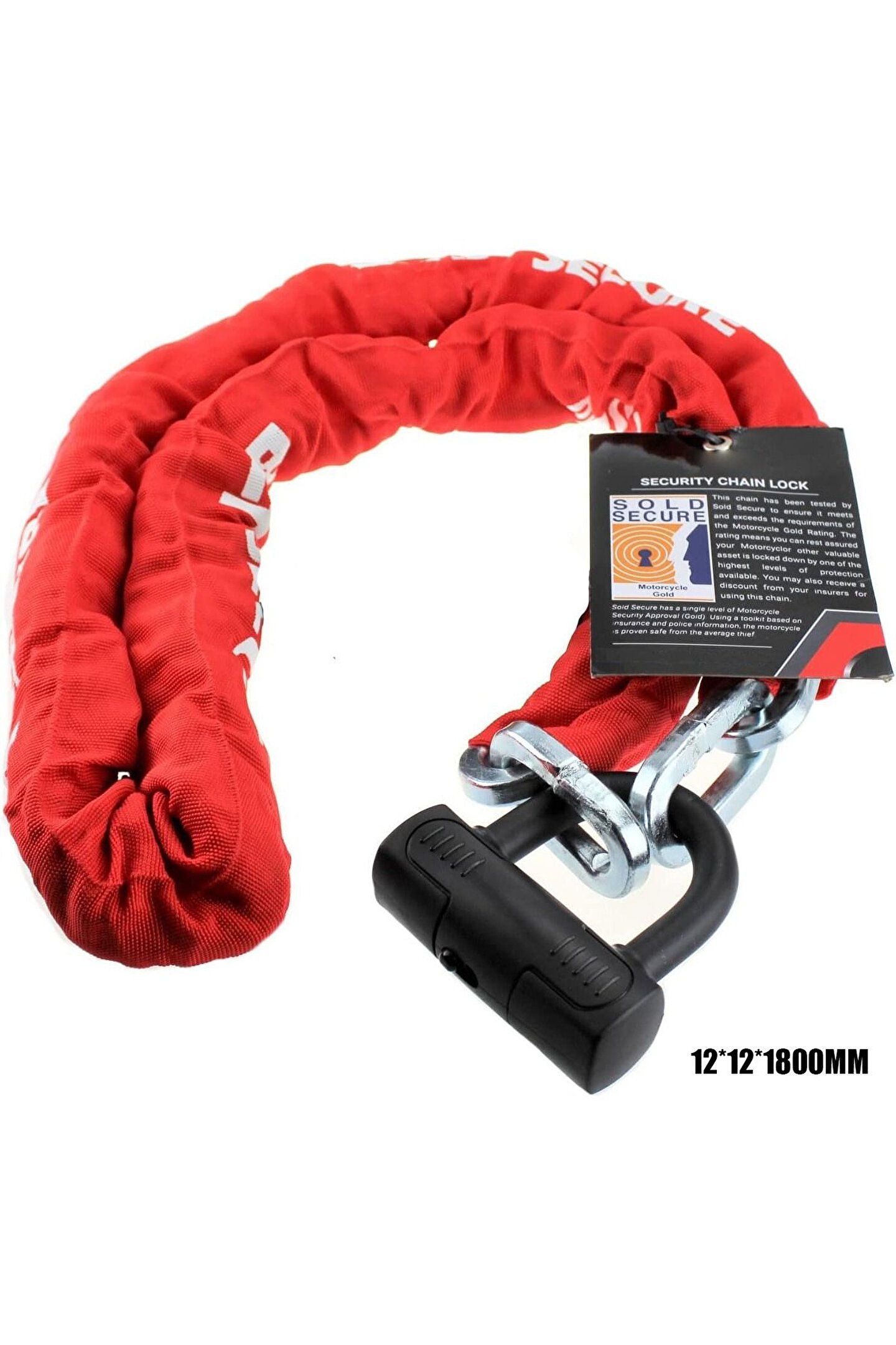 Motosiklet Zincir Halat Çelik Asma Kilit 1 Metre 80cm (180cm)x 12mm Kırmızı Kumaş Kaplı Motor Kilidi