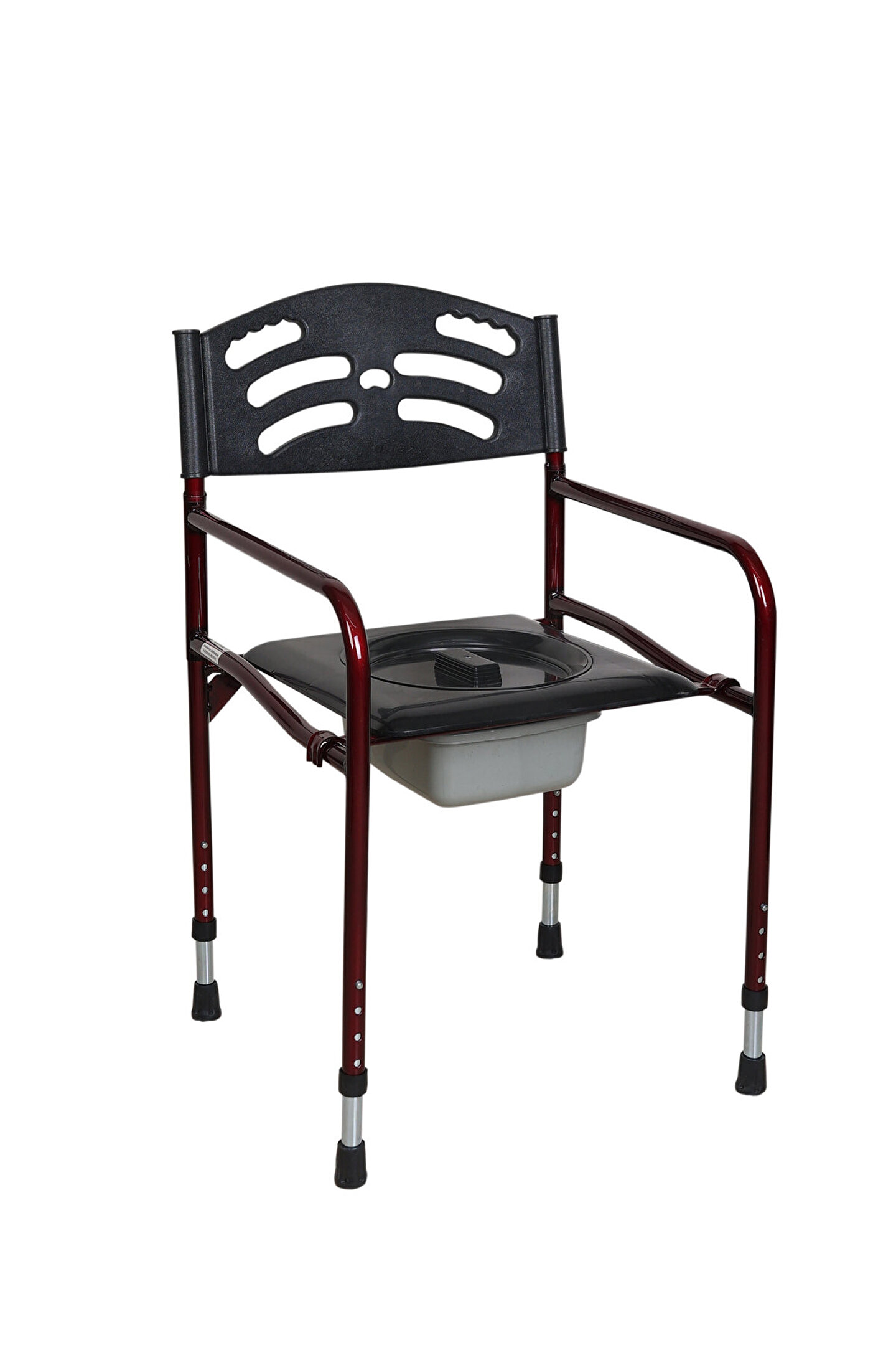 Ürün ağırlığı yaklaşık 4,8 kg'dır ve 120 kg taşıma kapasitesine sahiptir.; Katlanması ve kurulumu basit olup, az yer kaplar.; Kilitlenebilen ve 360 derece dönebilen tekerlekleri sayesinde banyoda, klozette, oda içerisinde ve dar alanlarda kullanıma uygundur.; Elektro statik toz boya ile boyanmış 25 mm özel çelik borudan üretilmiştir.; Kovası ve klozet kapağı ile beraber gönderilmektedir.; Oturma alanı genişliği 45 cm, eni 52 cm ve sırt yüksekliği 91 cm'dir.; 4 kademeli yükseklik ayarı sayesinde oturma yüksekliği 50cm ile 65cm arasında değişebilmektedir.; Kovası alt sürgü kısmına kolayca takılıp çıkarılabilmektedir.; Not: Sizlere daha hizmet verebilmemizi zorlaştıran ve mağazamıza ciddi maddi zararlara sebep olan sebepsiz iade taleplerinin engellenmesi için lütfen ürün ile ilgili aklınıza takılan tüm soruları bize sorun.; Ayrıca kargo sırasında oluşabilecek olası hasarlara çözüm üretebilmemiz için iletişime geçebilirsiniz.; Anlayışınız için teşekkürler.