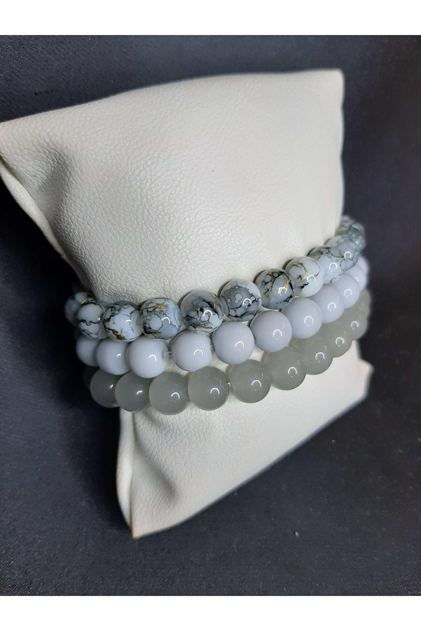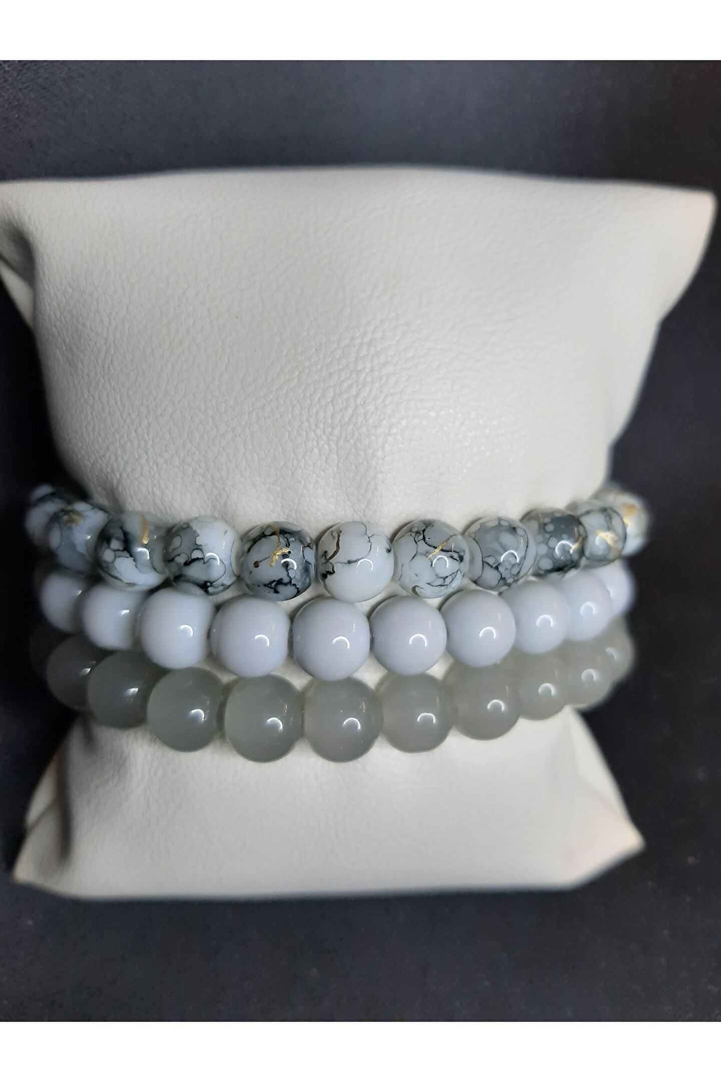 - Üç farklı cam boncuk bileklikten oluşan set, hem kadınların hem de erkeklerin kullanımına uygun olarak tasarlanmıştır.; - Her bileklikteki oval şekilli cam boncuklar, zarif ve şık bir görünüm sunar.; - Kolay bakım imkanı sağlayan bu bileklikler, nemli bir bez ile temizlenebilir; böylece uzun süre ilk günkü gibi kalır.; - Unisex tasarımı sayesinde herkes tarafından rahatlıkla tercih edilebilir; yetişkinler için idealdir.; - Üretiminde kullanılan cam malzeme, dayanıklılığı ve estetik duruşuyla dikkat çeker.; - Türkiye menşeli olan bu ürünler, yerel üretim avantajını yansıtarak kalite standartlarına sahiptir.;