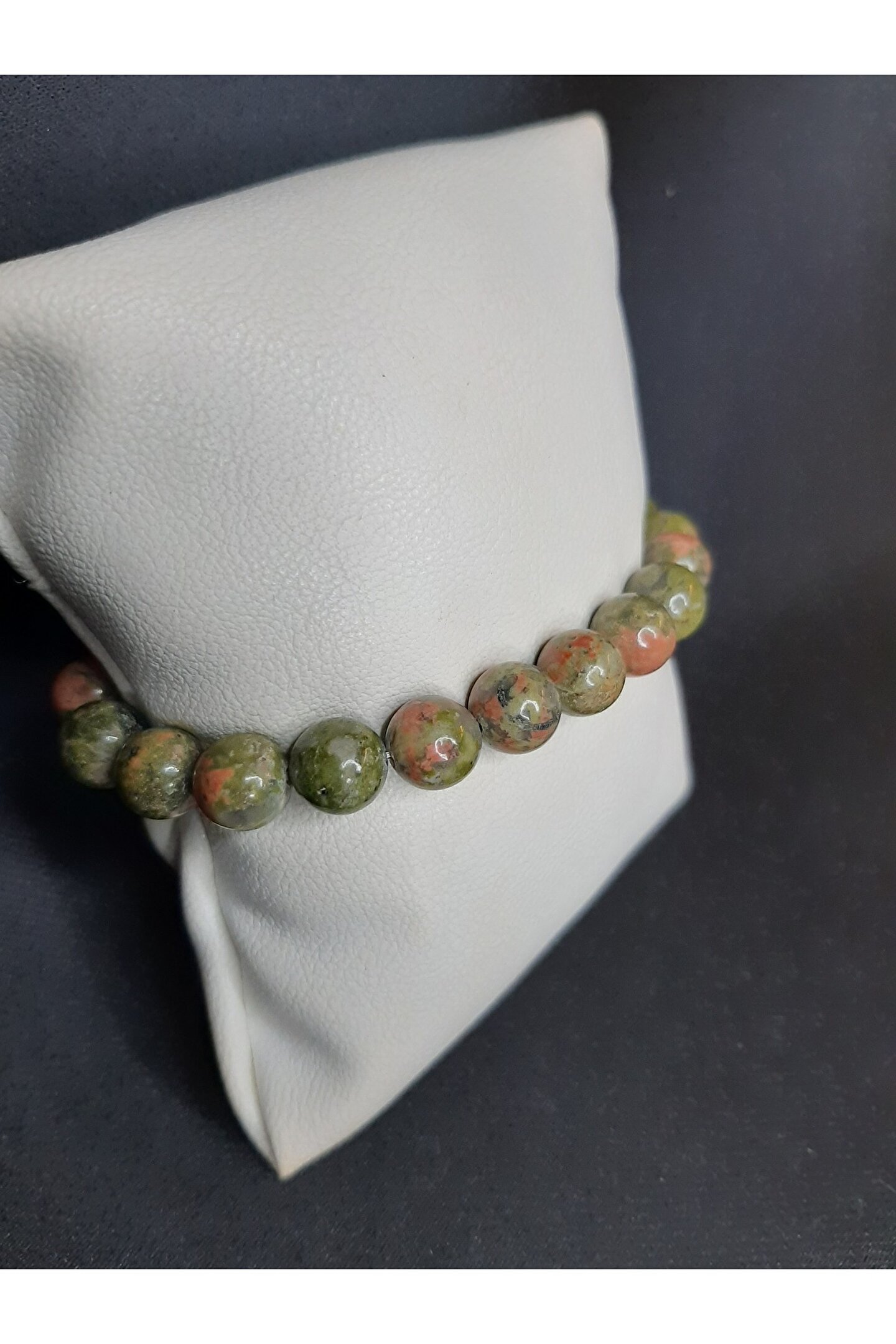 - Doğal taşlardan üretilmiş, her biri benzersiz desenlere sahip unakit taşı bileklik, doğanın estetiğini bileğinizde hissedin.; - Unisex tasarımıyla hem kadınların hem de erkeklerin günlük kullanımına uygun, şıklığı ve rahatlığı bir arada sunar.; - Yetişkinler için ideal bir aksesuar seçeneği olarak, her yaş grubuna hitap eden zarif bir görünüm sağlar.; - Bakımı kolaydır; sadece nemli bir bezle silerek temizliği yapılabilir, böylece bilekliğiniz her zaman ilk günkü gibi parlak kalır.; - Türkiye'de üretilen bu bileklik, yerel zanaatkarlık becerilerinin bir ürünü olarak gururla sunulur.;